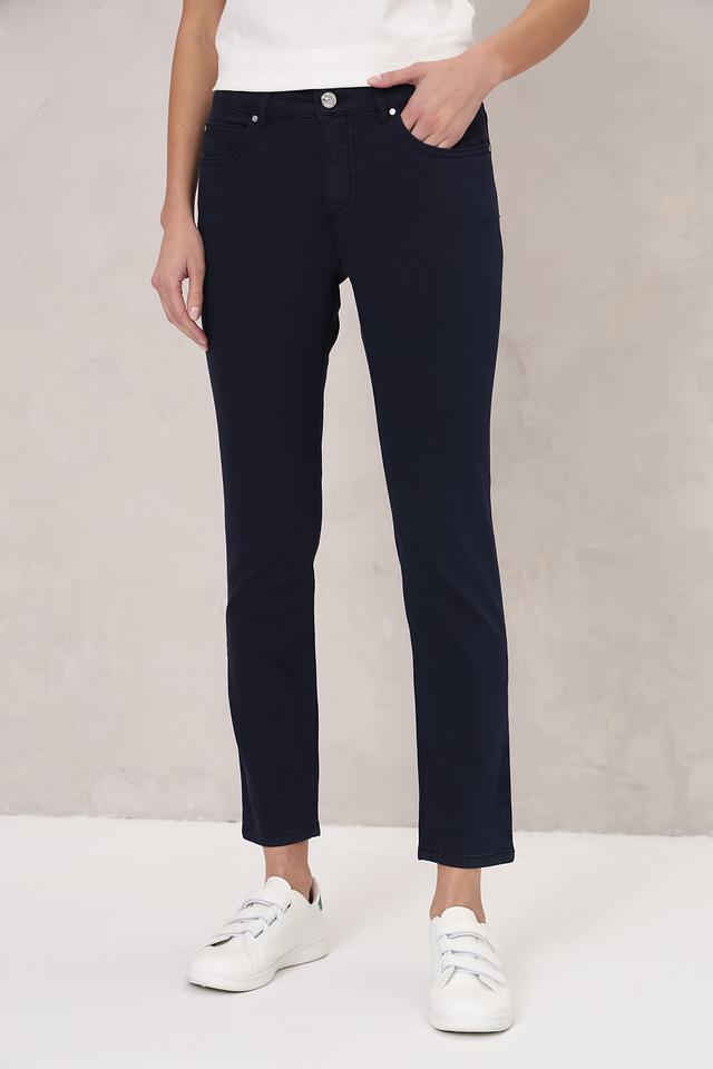 Представляем стильные джинсы слим-фит от бренда Oui. Эта модель выполнена в насыщенном тёмно-синем цвете, который легко сочетается с различными элементами гардероба.