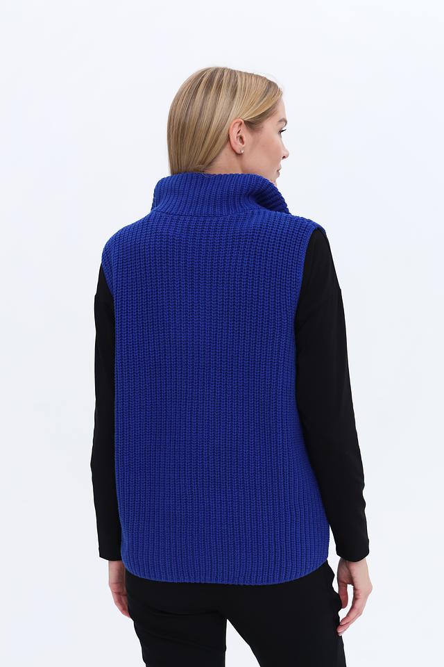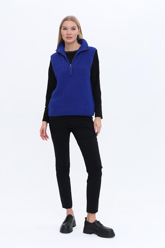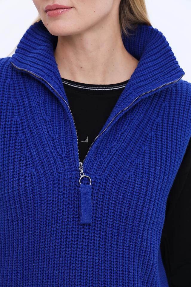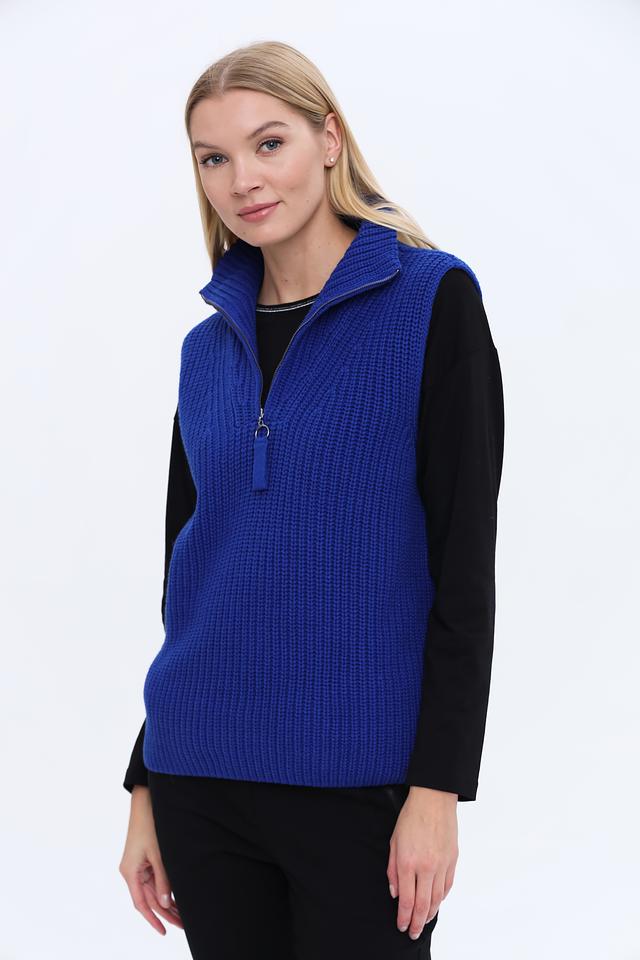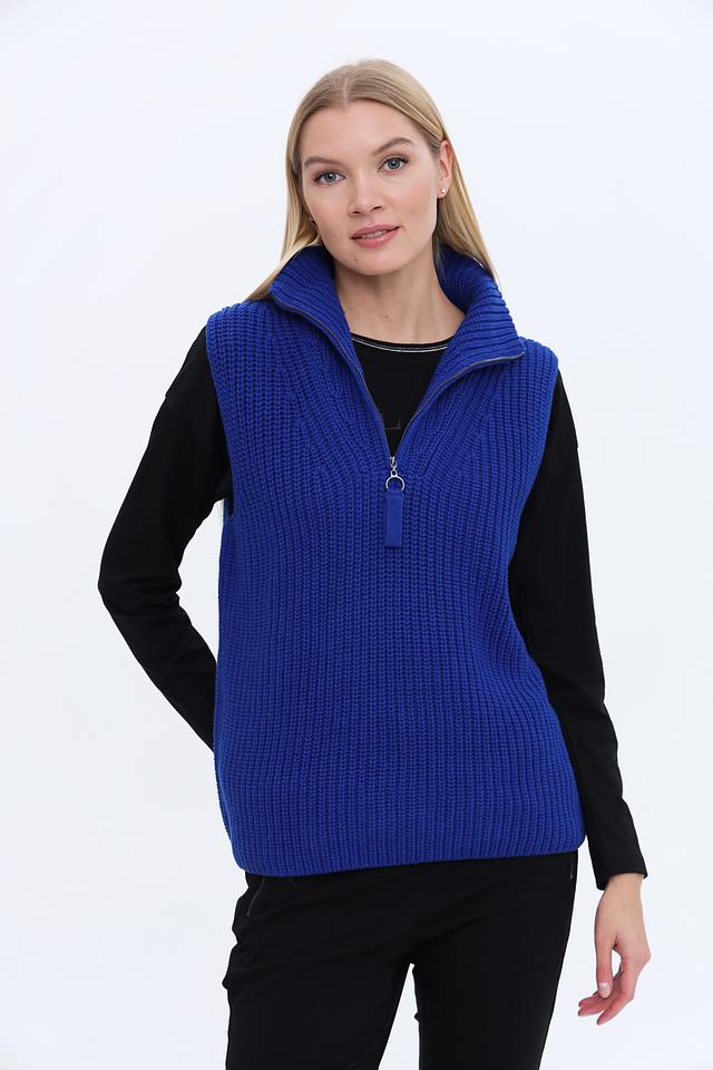Синий вязаный жилет от Oui – стильный и комфортный выбор для создания многослойных образов. Модель выполнена из мягкого трикотажа с фактурной вязкой и дополнена молнией. Идеально сочетается с рубашками и водолазками. Состав: хлопок 60%, полиакрил 40%