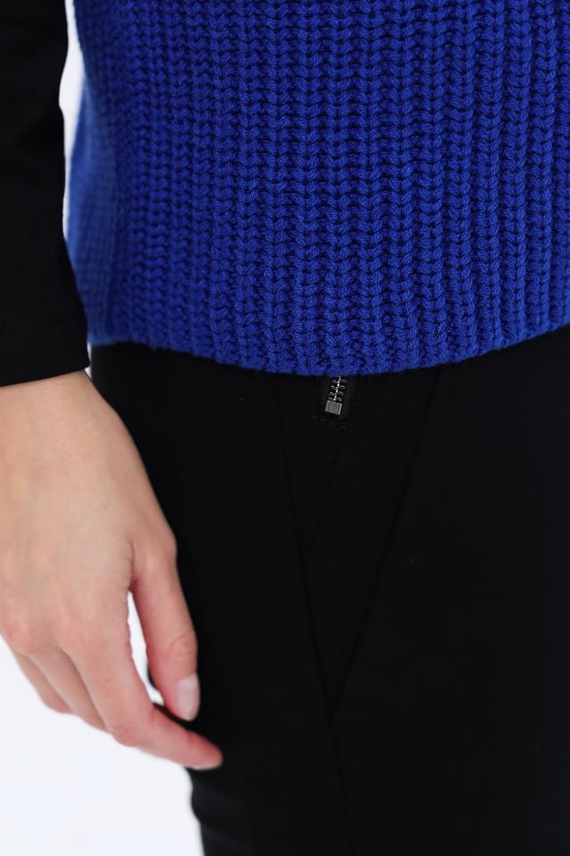 Модель имеет классический крой и фактурную вязку, которая придает ей особый шарм. Застежка-молния позволяет регулировать степень прилегания и создавать различные образы.