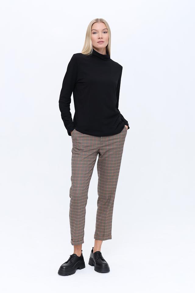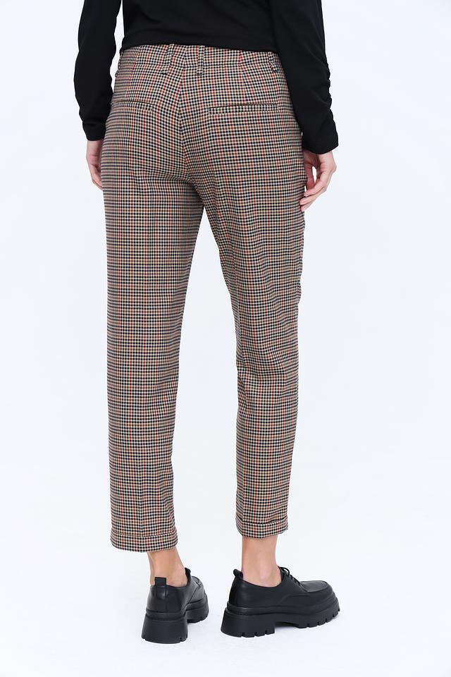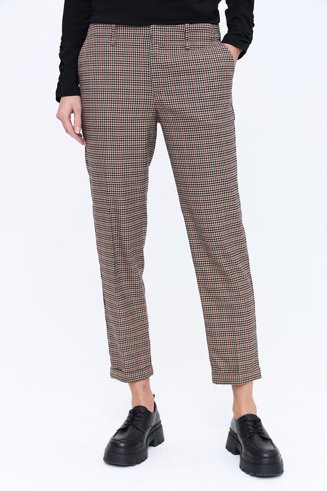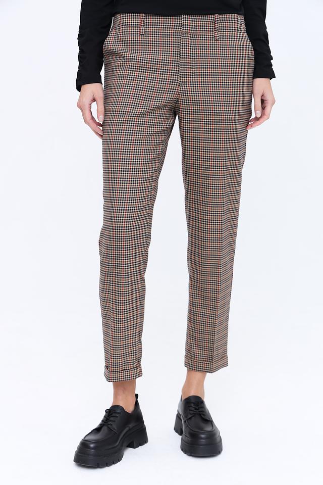 Эти стильные брюки от Oui станут отличным дополнением к вашему гардеробу. Модель выполнена в классическую клетку коричневых оттенков, что придает ей элегантный и универсальный вид.