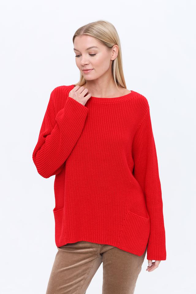 Красный пуловер от Oui из 100% хлопка – это комфорт и стиль в одном изделии. Свободный крой и удобные карманы делают его идеальным выбором для повседневной носки. Состав: хлопок 100%