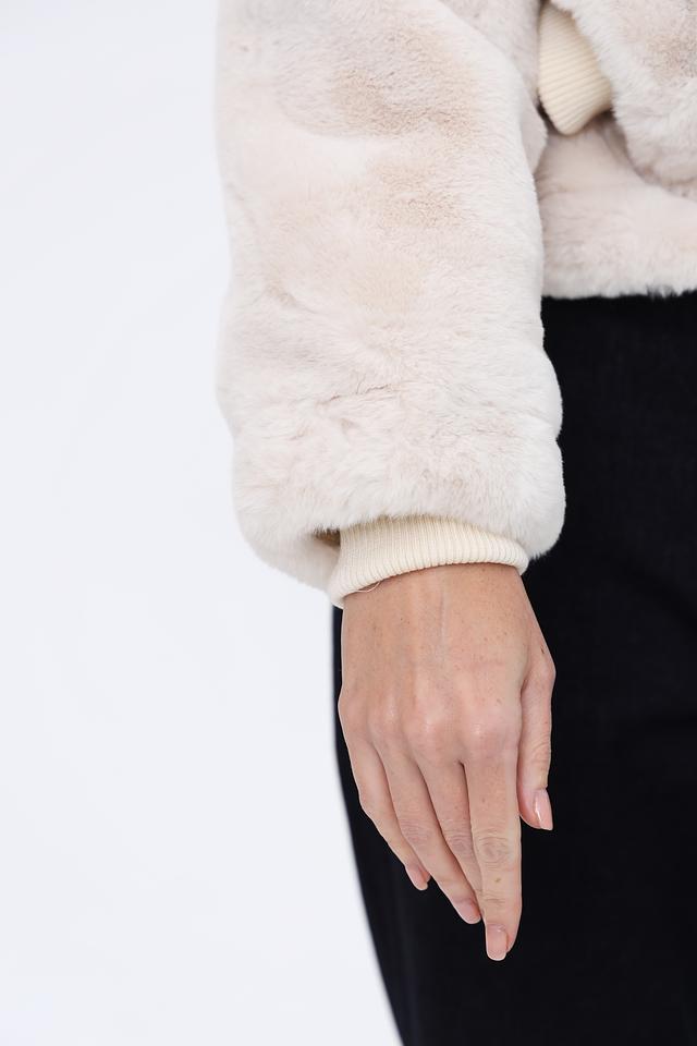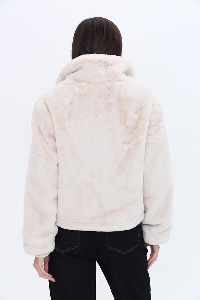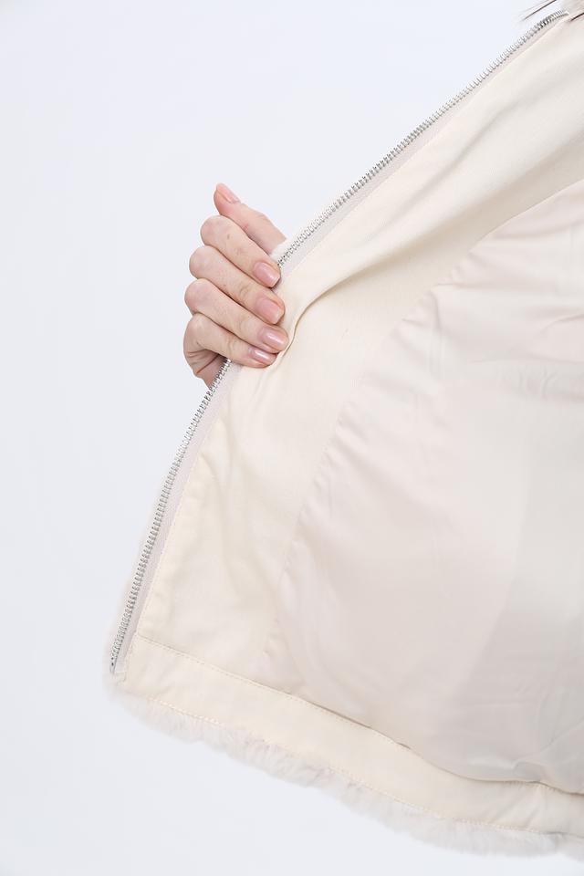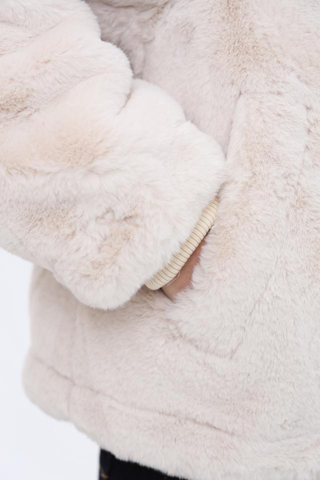 Шуба имеет бежевый цвет и короткий крой, что придает ей современный и стильный вид. Застежка-молния позволяет легко надевать и снимать шубу, а капюшон защищает от ветра и снега.