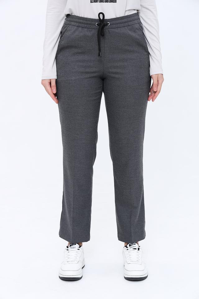 Брюки изготовлены из смеси полиэстера, вискозы и эластана, что обеспечивает им мягкость, комфорт и хорошую посадку. Эластичный пояс с кулиской позволяет регулировать облегание, а манжеты добавляют образу непринужденности.