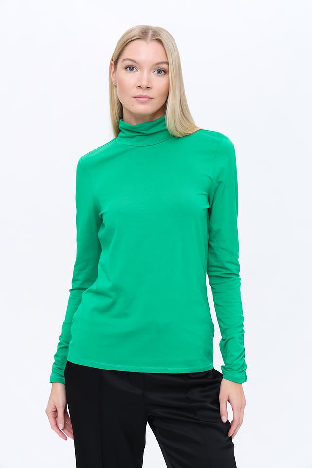 Зелёная водолазка от Oui выполнена из мягкого трикотажа с добавлением хлопка и модала. Приталенный силуэт и длинные рукава делают эту модель универсальной основой для создания стильных образов. Состав: хлопок 47%, модал 47%, эластан 6%