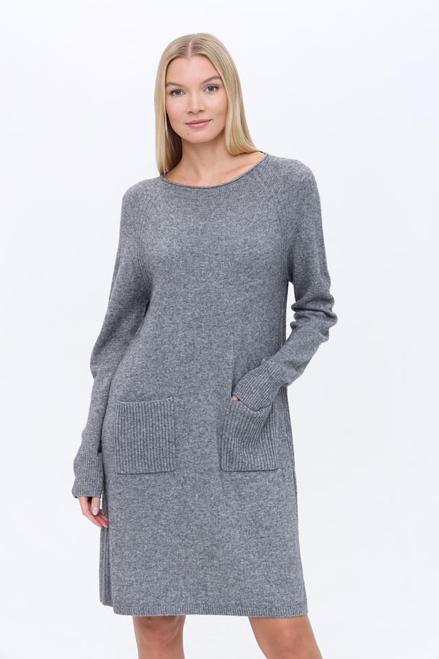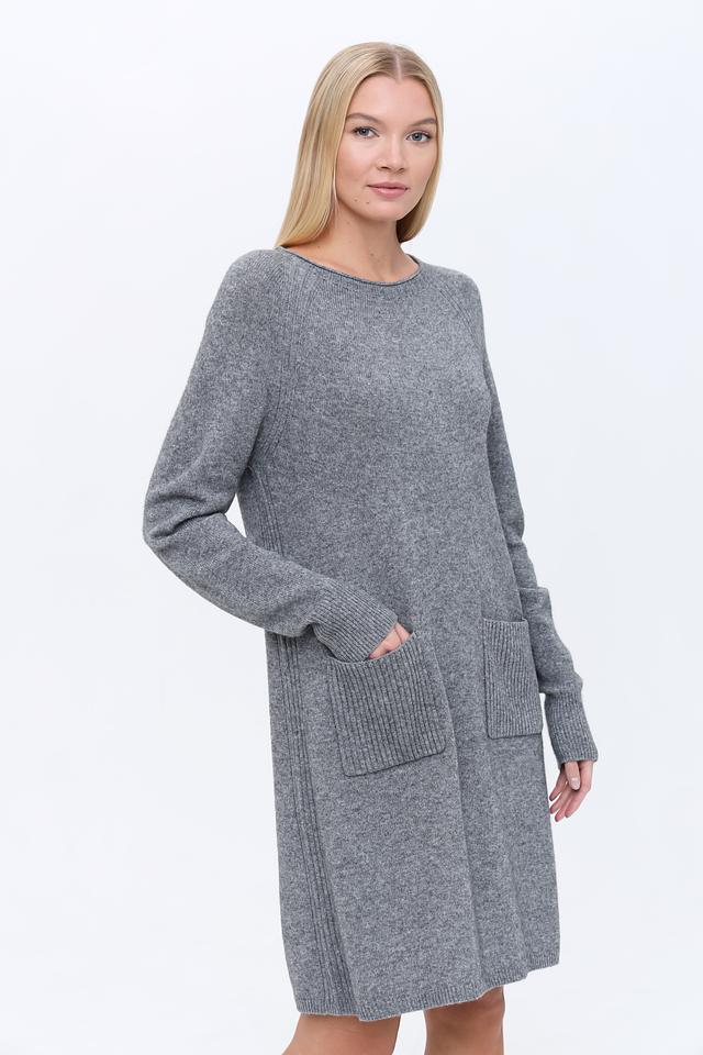Платье имеет прямой силуэт, круглый вырез горловины и длинные рукава с манжетами. По бокам расположены удобные втачные карманы, добавляющие практичности образу. Трикотажная структура платья обеспечивает комфорт при носке.