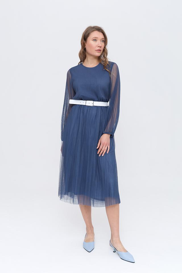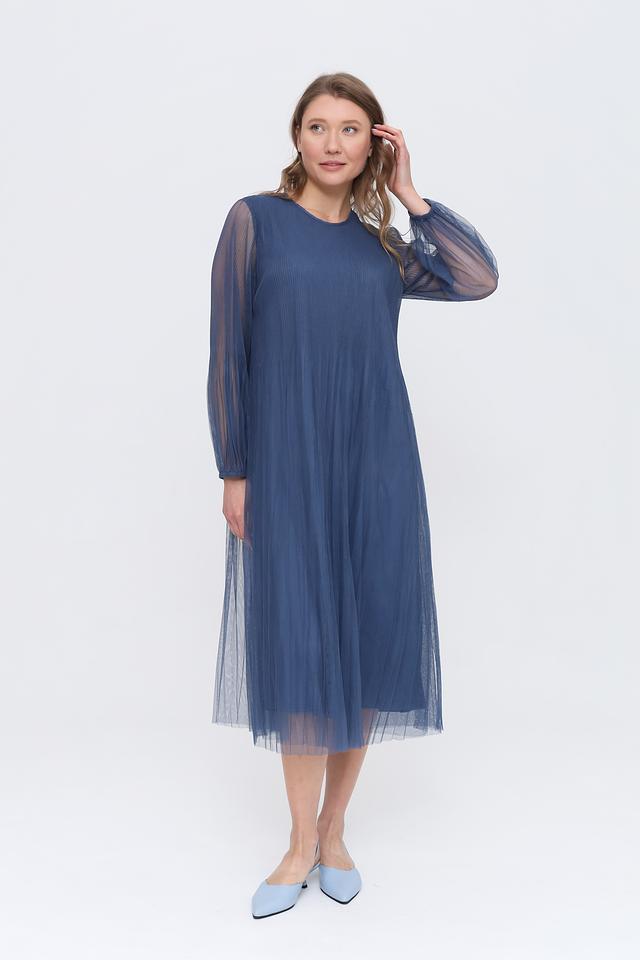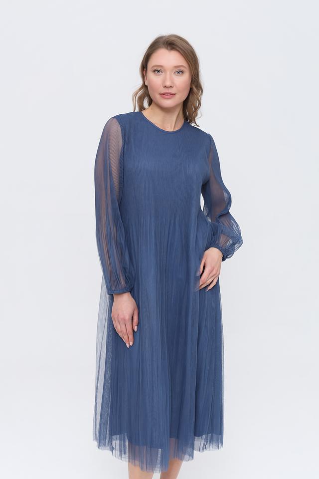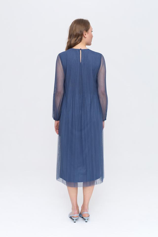 Юбка платья многослойная, выполнена из плиссированной ткани, что придает ей объем и динамику. Платье имеет круглый вырез горловины. Подходит для создания как повседневных, так и вечерних образов.