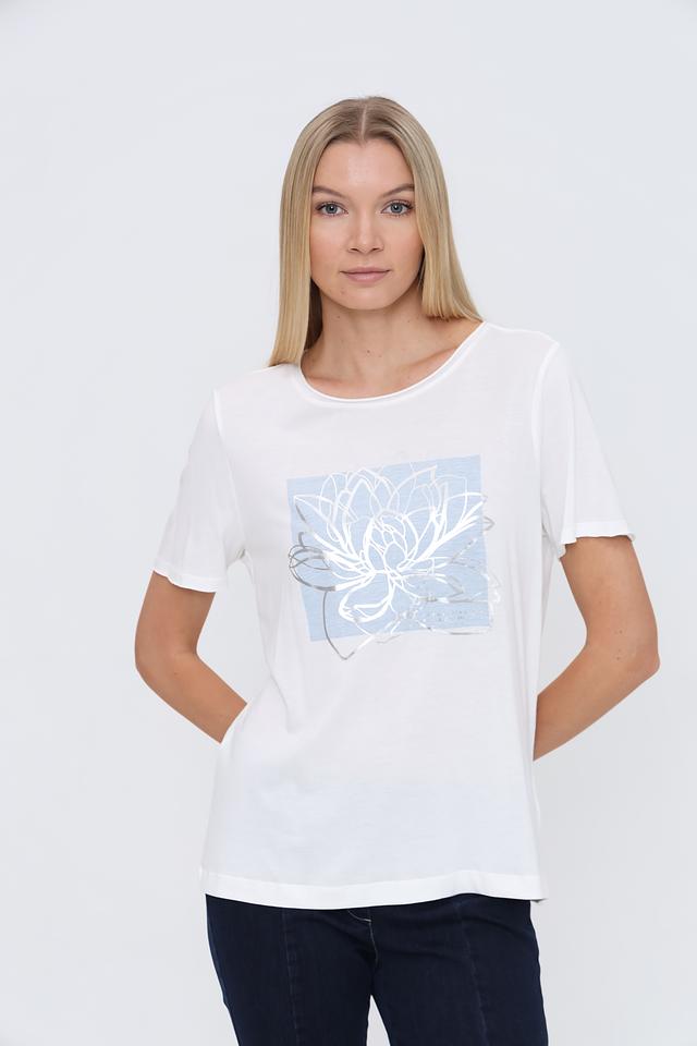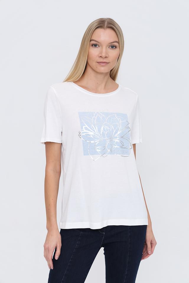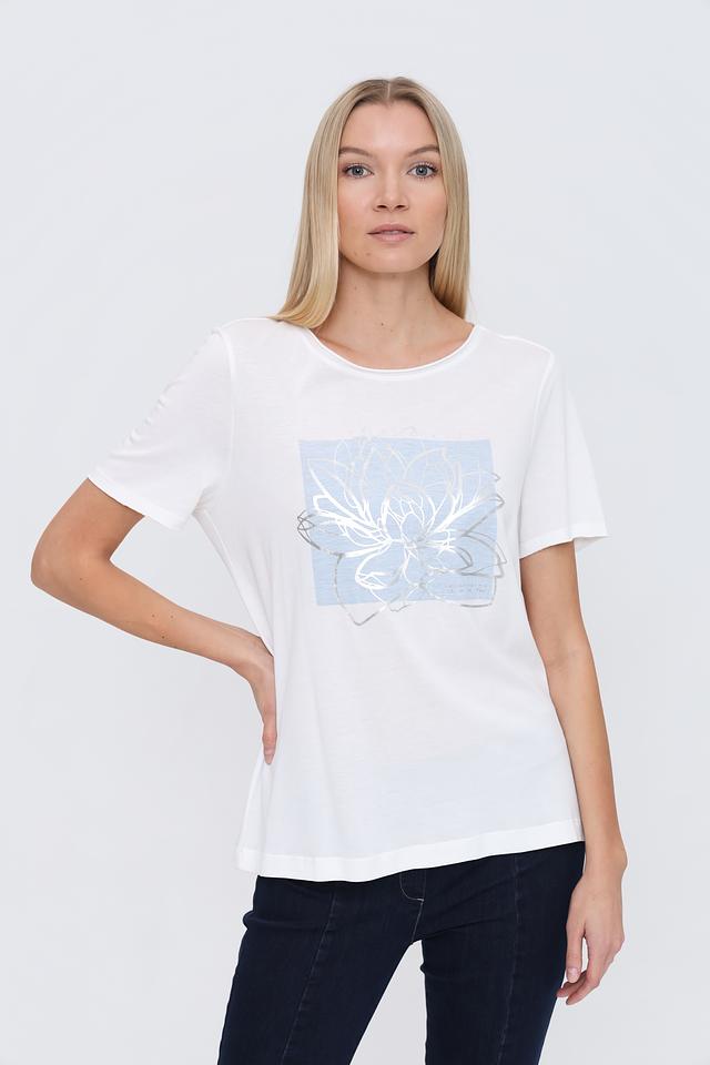 Белая футболка Oui с оригинальным цветочным принтом голубого оттенка станет отличным дополнением к вашему гардеробу. Изготовлена из мягкого и приятного к телу сочетания хлопка и модала, обеспечивая комфорт в течение всего дня. Состав: хлопок 50%, модал 50%