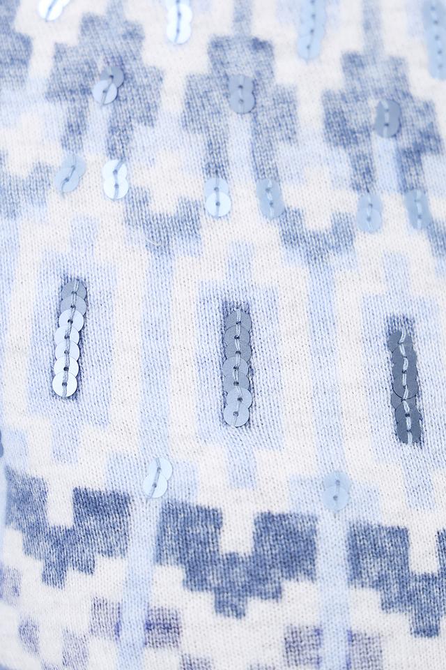 Пуловер изготовлен из высококачественного 100% хлопка, что делает его приятным к телу и обеспечивает комфорт при ношении. Текстура вязки мягкая и нежная, а узор добавляет изделию оригинальности и индивидуальности.