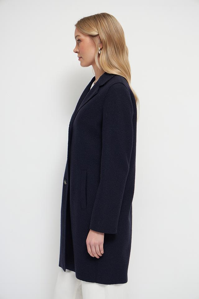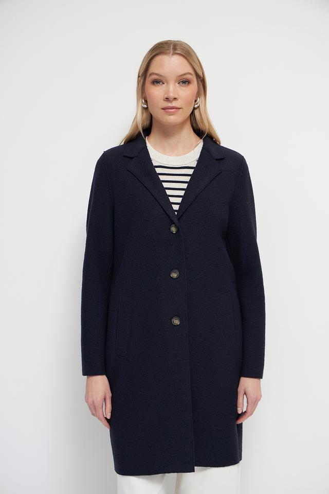 Это элегантное пальто от бренда Oui станет прекрасным дополнением к вашему гардеробу. Выполнено в классическом тёмно-синем цвете из высококачественной 100% шерсти, обеспечивающей тепло и комфорт в холодную погоду.