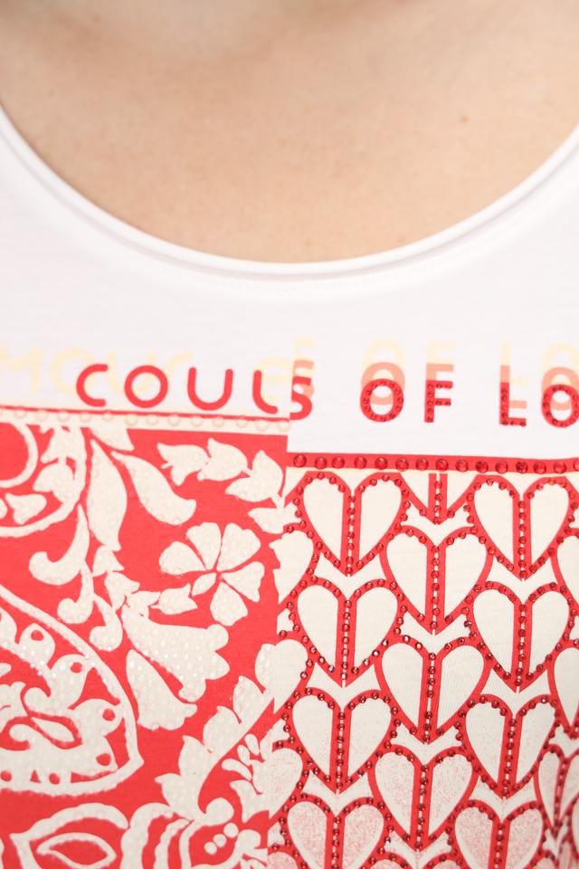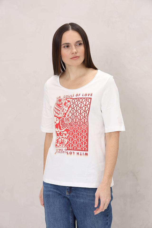 Белая футболка от Oui с ярким красным принтом в виде узора. Изготовлена из 100% хлопка, обеспечивающего комфорт и воздухопроницаемость. Стильный и оригинальный выбор для повседневного гардероба. Состав: хлопок 100%