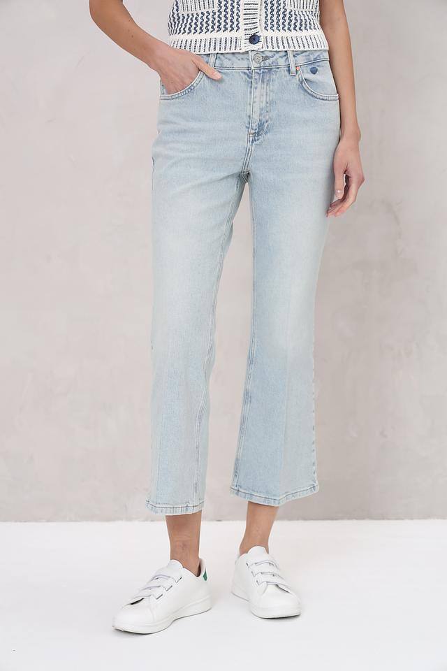 Светло-голубые джинсы клеш от Oui — стильная и комфортная модель для повседневной носки. Классический пояс с пуговицами и пятикарманный крой обеспечивают удобную посадку и функциональность. Состав: хлопок 97%, полиэстер 2%, эластан 1%