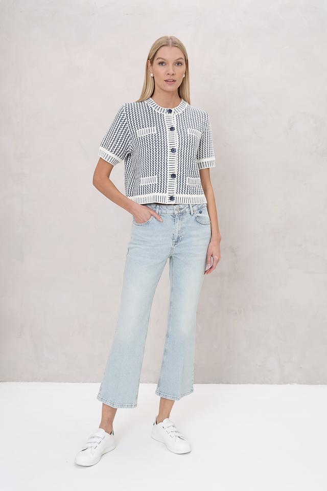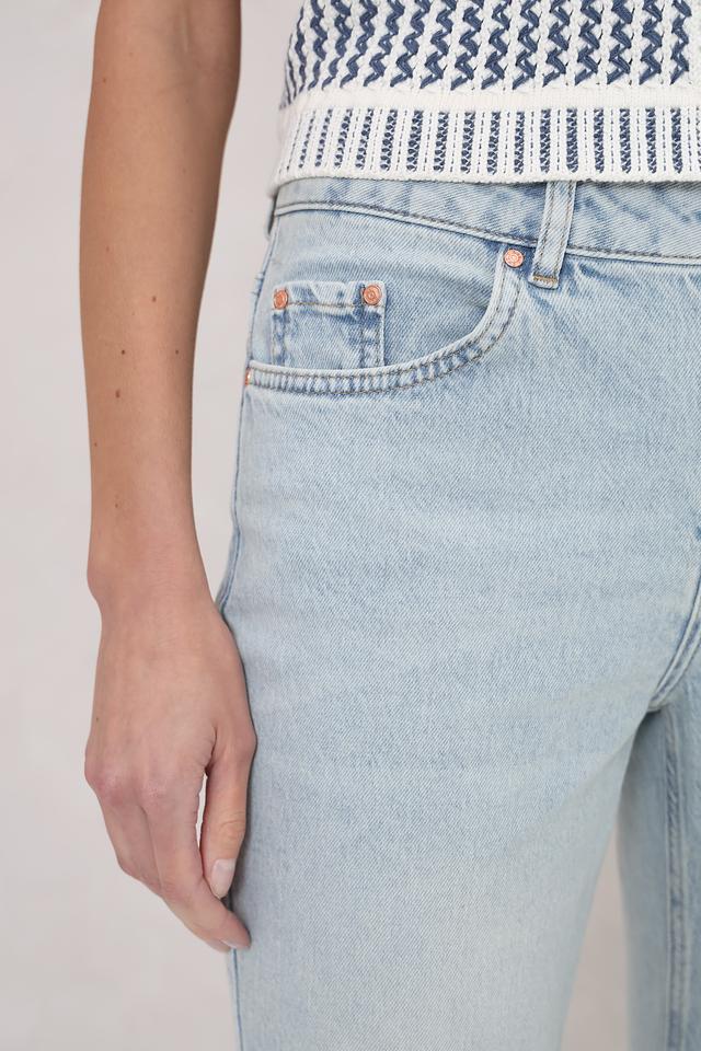 Классический пояс с пуговицей и пять карманов делают эти джинсы практичными и универсальными. Текстура ткани имеет лёгкий эффект потертости, что добавляет джинсам непринуждённости и стиля. Джинсы идеально подойдут для создания повседневных образов в сочетании с топами, футболками и кардиганами.