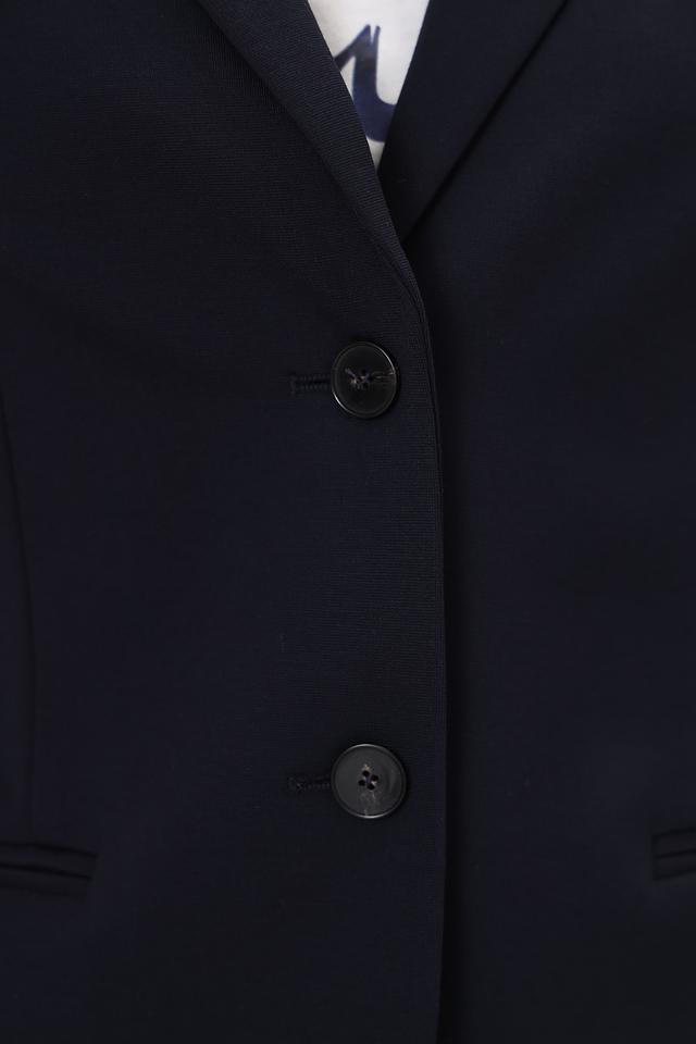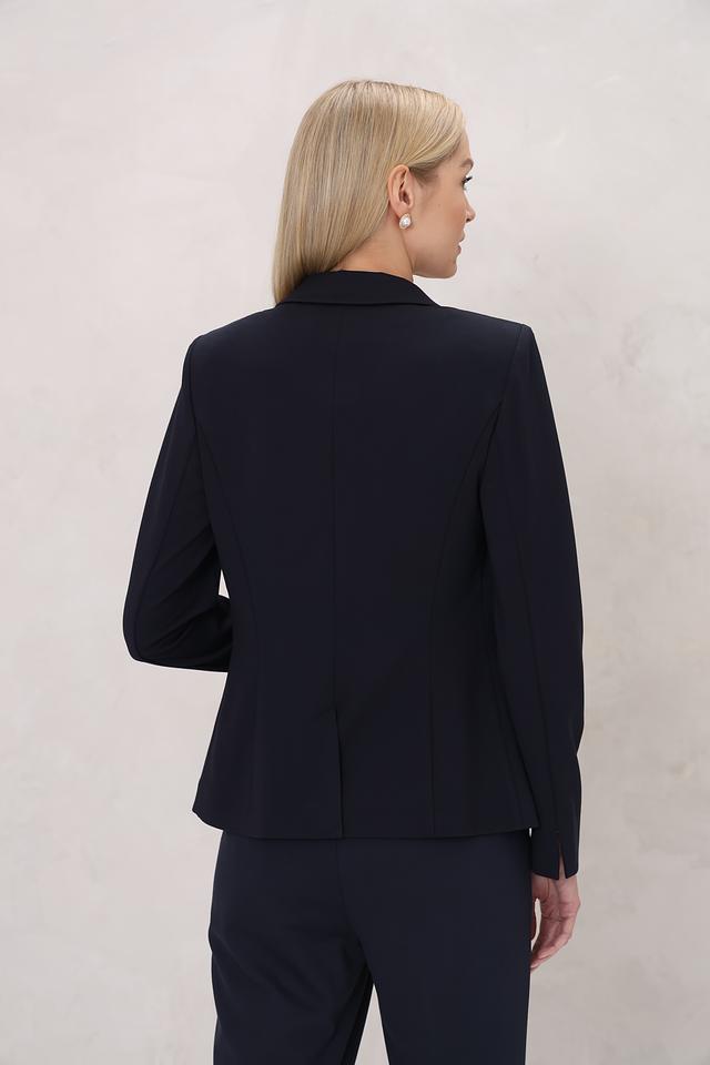 Жакет имеет приталенный силуэт, который подчеркивает фигуру, и застёжку на две пуговицы. Длинные рукава и лацканы классической формы придают жакету элегантный вид. Подкладка обеспечивает дополнительный комфорт при носке.
