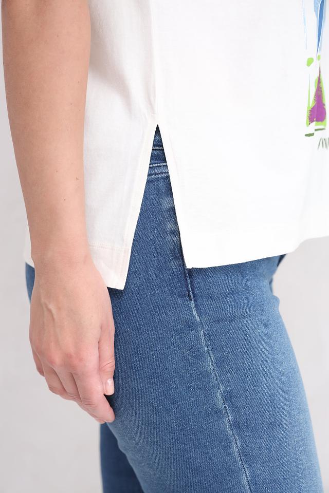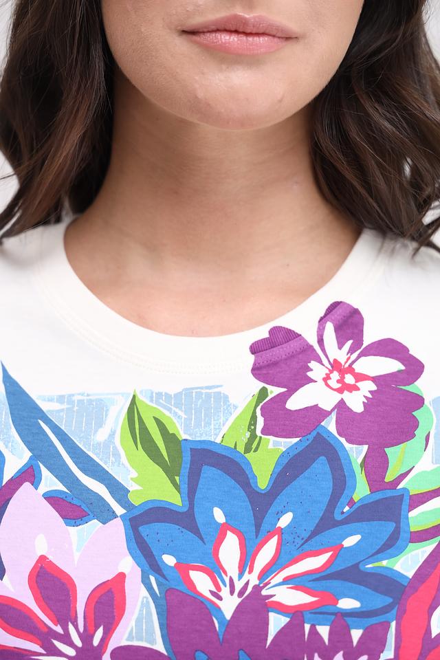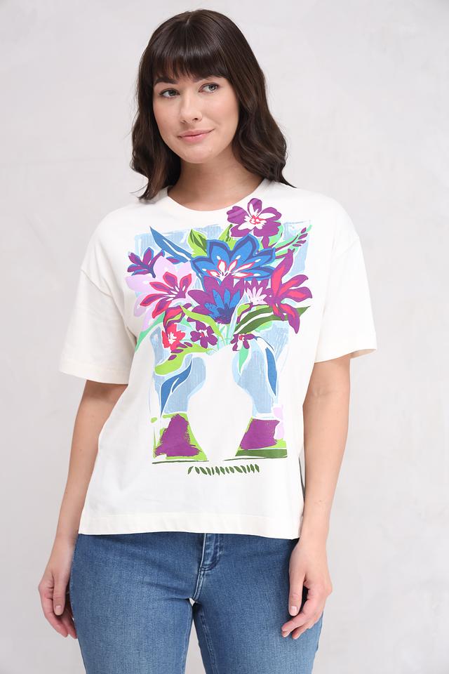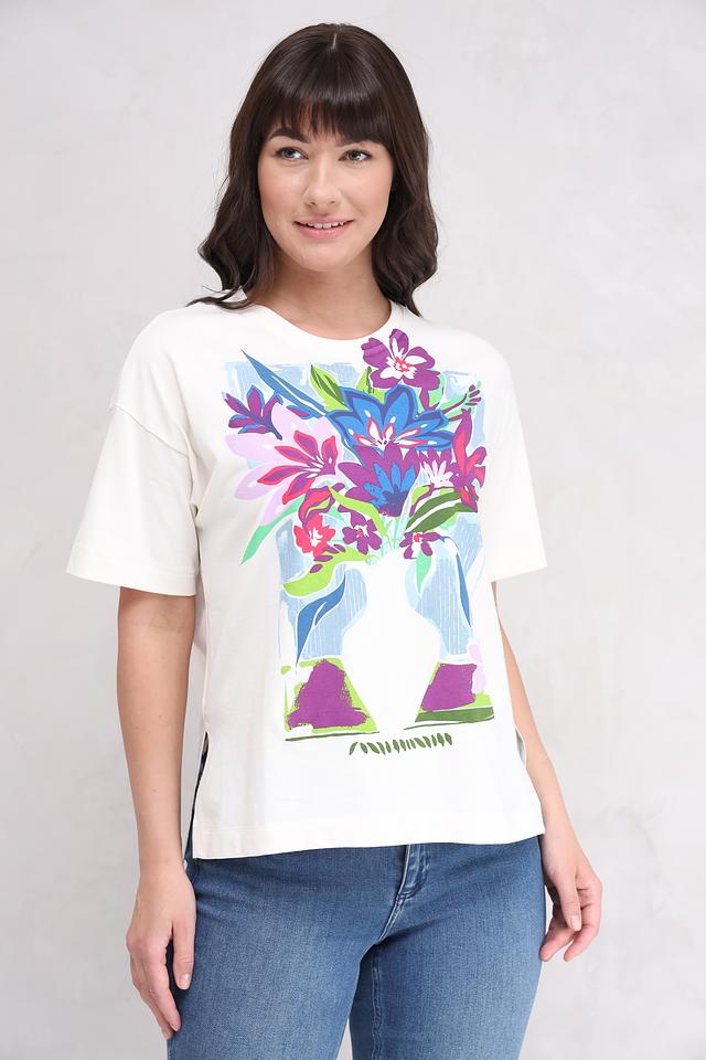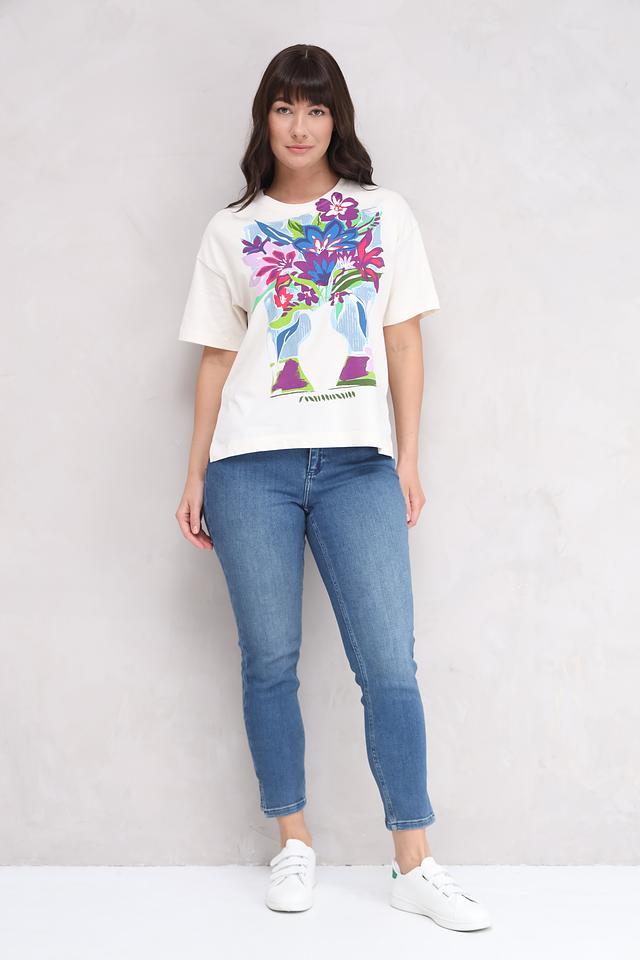 Женская футболка Oui белого цвета с ярким цветочным принтом. Модель свободного кроя из 100% хлопка обеспечит комфорт и удобство в повседневной носке. Состав: хлопок 100%