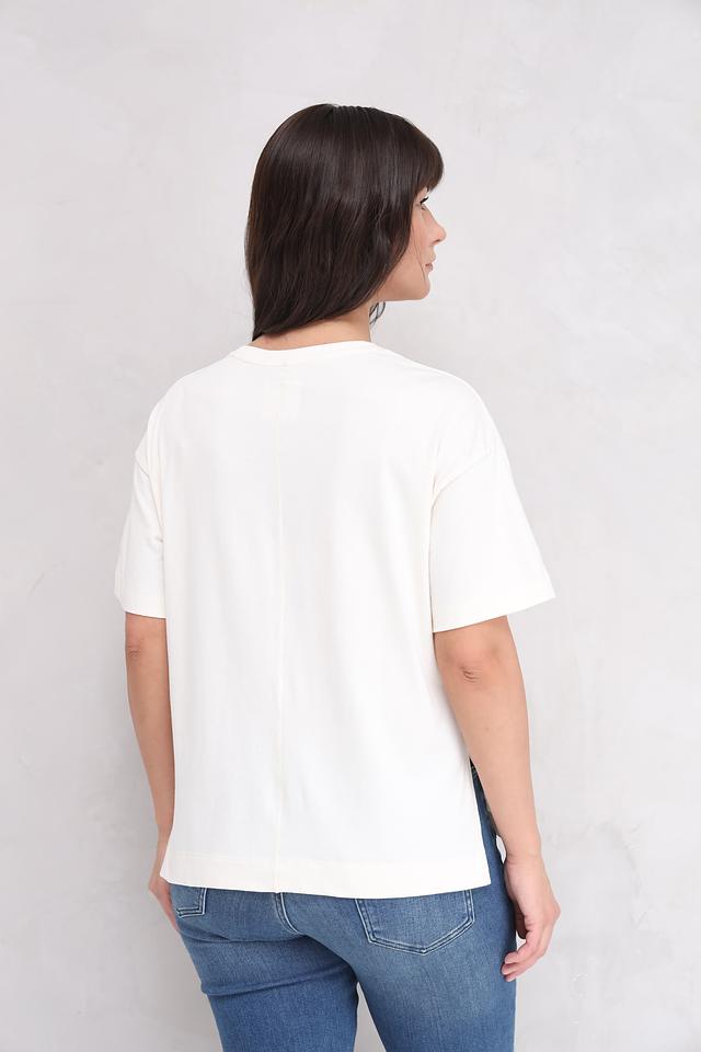 Модель имеет свободный крой, что обеспечивает комфорт и свободу движений. Футболка изготовлена из 100% хлопка, что делает ее приятной к телу и позволяет коже дышать. Округлый вырез горловины и короткие рукава делают эту футболку идеальным выбором для теплой погоды.