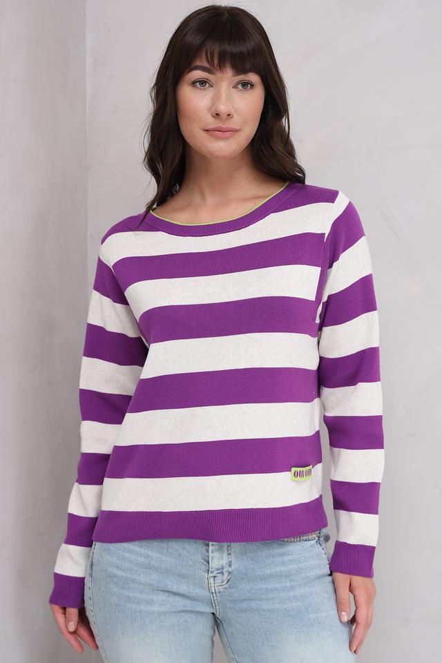 Пуловер Oui в полоску фиолетовый