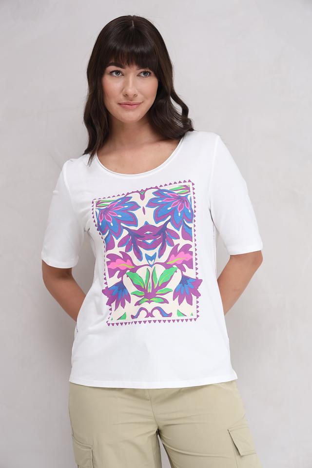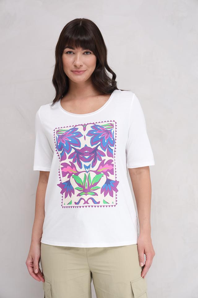 Белая футболка от Oui с ярким цветочным принтом – стильное и комфортное решение для повседневного образа. Изготовлена из мягкого хлопка с модалом, обеспечивающего приятные ощущения на коже. Состав: хлопок 50%, модал 50%
