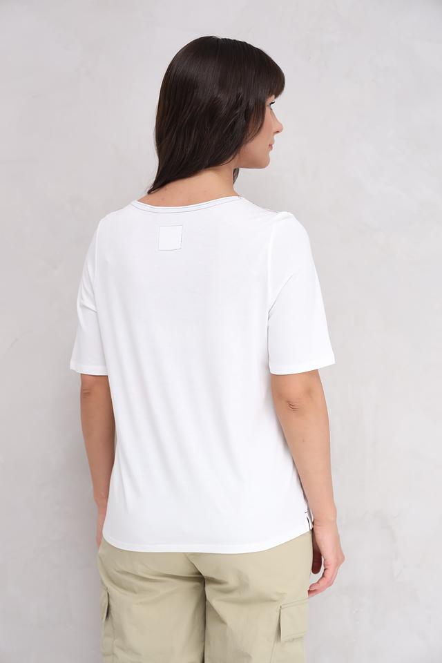 Эта белая футболка от бренда Oui станет отличным дополнением к вашему гардеробу. Она выполнена из высококачественного хлопка с добавлением модала, что делает ее приятной на ощупь и комфортной в носке.