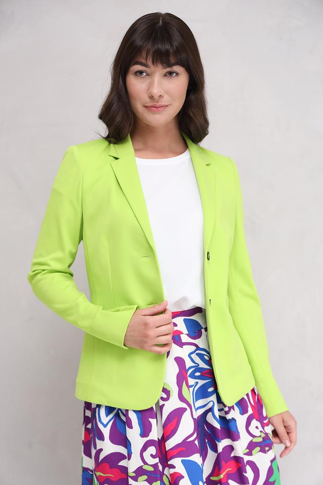 Этот жакет от бренда Oui выполнен в ярком лаймовом цвете, который добавит свежести и оригинальности вашему образу. Жакет имеет классический приталенный силуэт, который подчеркивает фигуру и обеспечивает комфортную посадку.