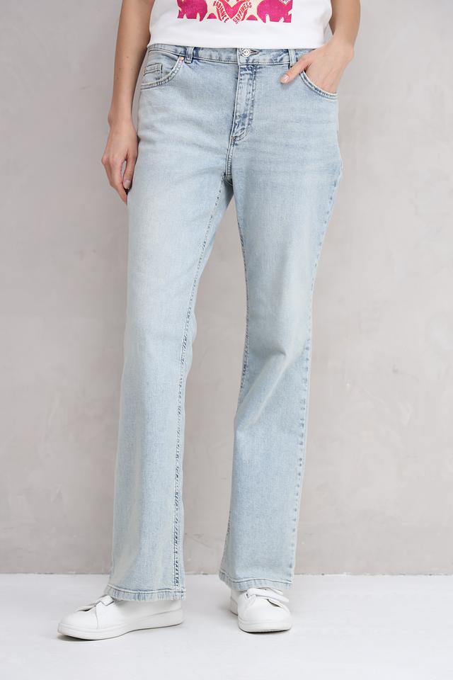 Светло-голубые джинсы Oui прямого кроя станут отличным дополнением к вашему гардеробу. Модель выполнена из качественного хлопка с добавлением эластана для комфорта и свободы движений. Классический пояс с пуговицей. Состав: хлопок 98%, эластан 2%