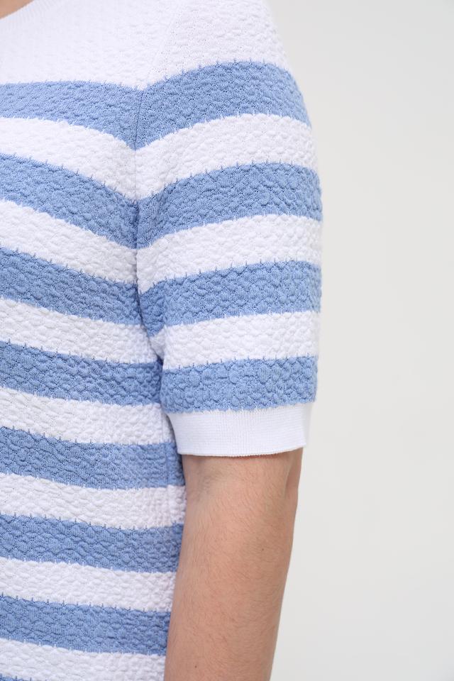 Женский пуловер Oui голубого и белого цвета с коротким рукавом выполнен в классическую полоску. Модель из 100% хлопка обеспечит комфорт и удобство в повседневной носке. Состав: хлопок 100%