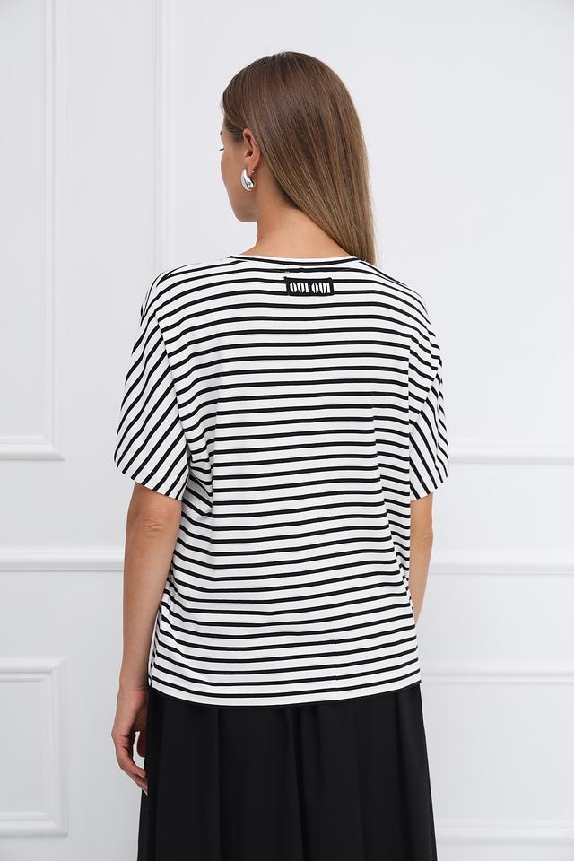 Эта стильная футболка от бренда Oui станет отличным дополнением к вашему гардеробу. Классический чёрно-белый полосатый дизайн делает её универсальной и легко сочетаемой с различными элементами одежды.