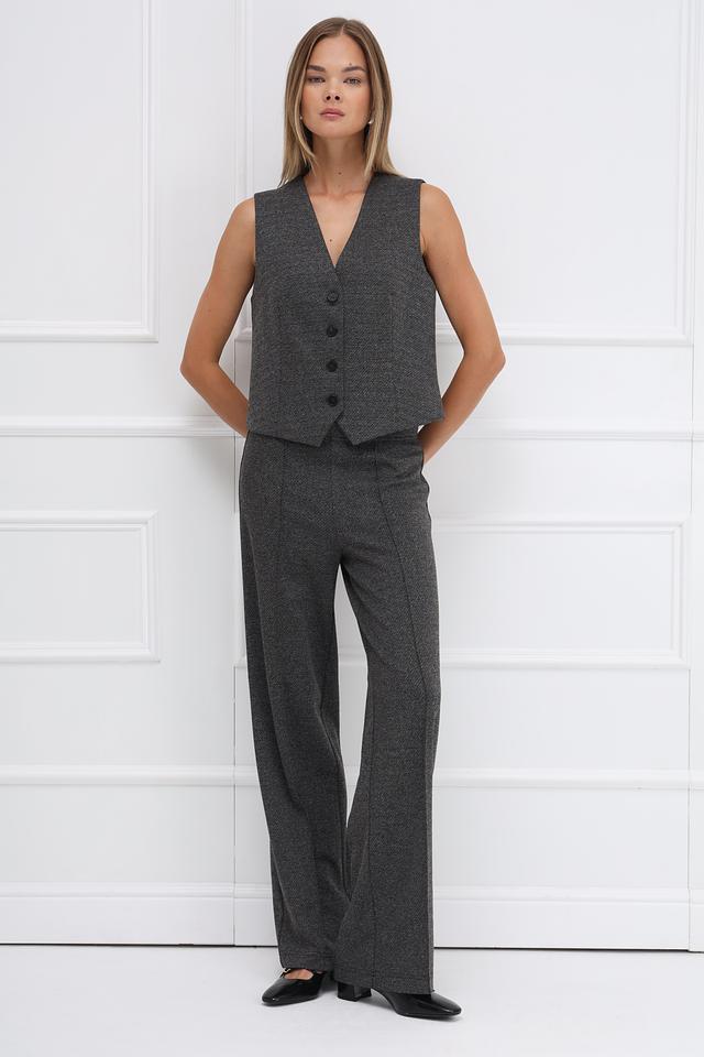 Сочетание материалов обеспечивает комфорт, воздухопроницаемость и небольшую эластичность. Жилет приятен к телу и не сковывает движений. Он идеально подходит для создания многослойных образов и добавления элегантности в повседневный стиль.