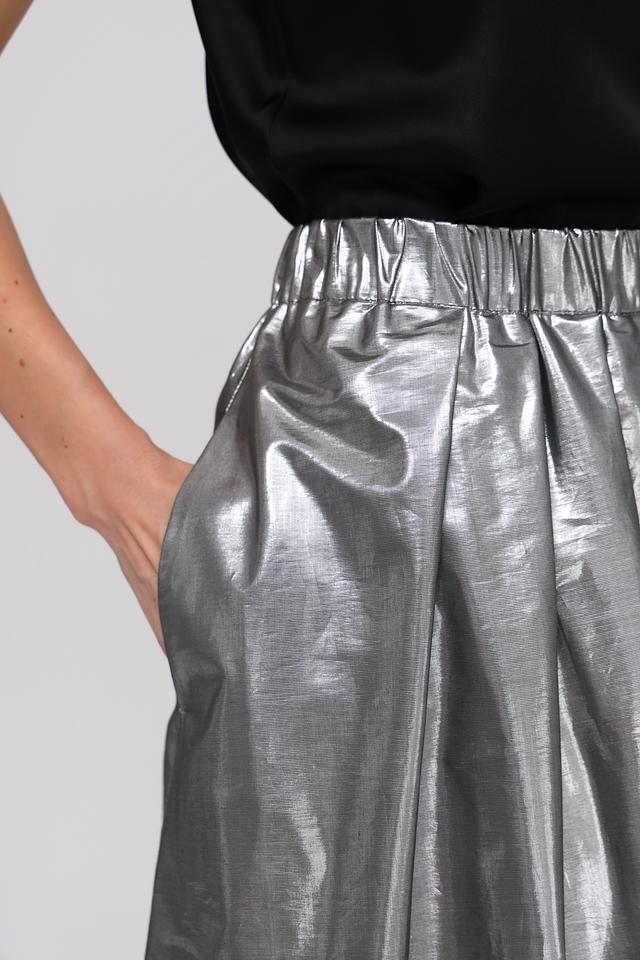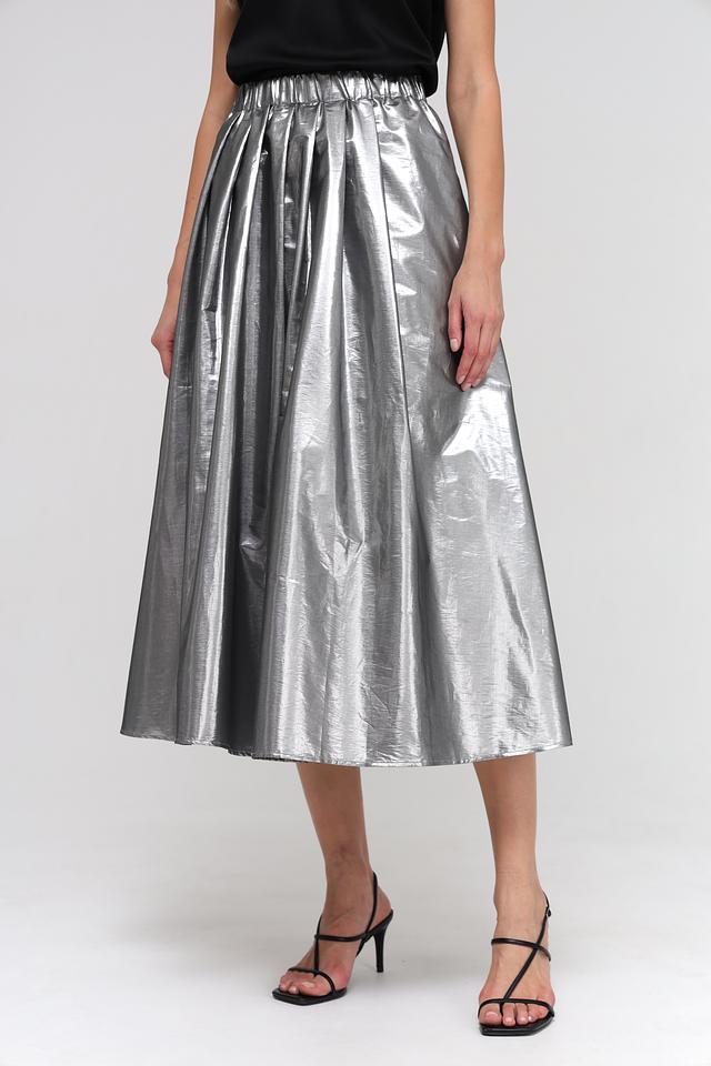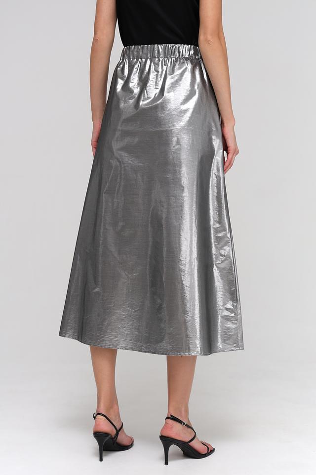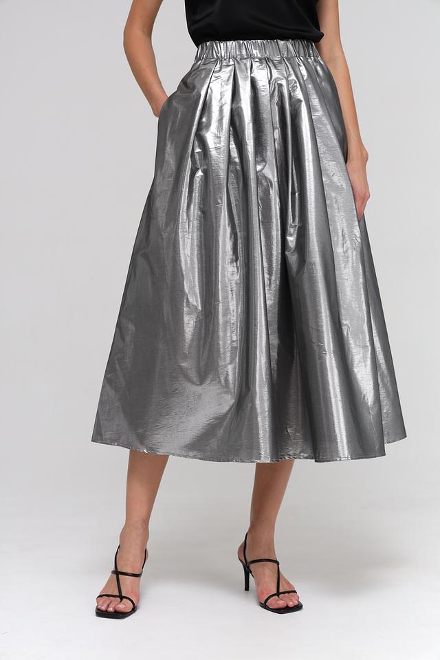 Благодаря своему серебристому цвету, эта юбка идеально подходит для вечерних выходов, особых случаев или для тех, кто любит добавлять немного гламура в свой повседневный образ. Сочетайте ее с однотонными топами и элегантными аксессуарами, чтобы создать завершенный и стильный лук.