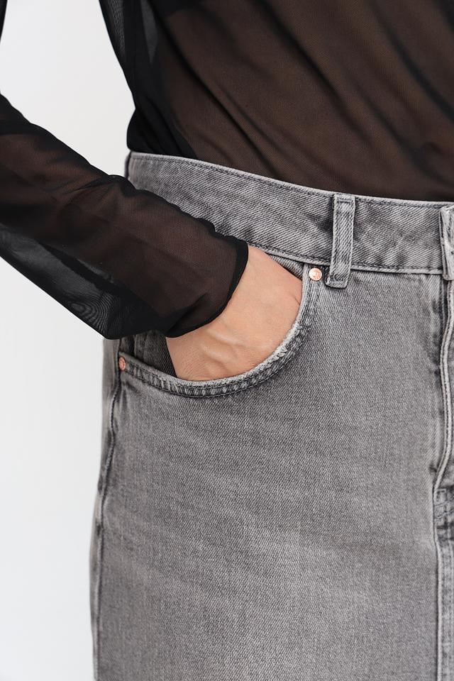 Серая джинсовая юбка от Oui выполнена из хлопка с добавлением эластана для комфорта. Модель имеет длину миди, прямой крой и асимметричный разрез. Состав: хлопок 94%, эластомультиэстер 5%, эластан 1%