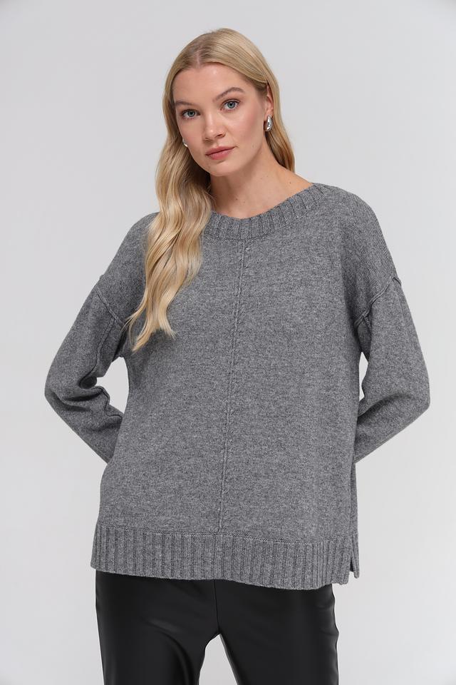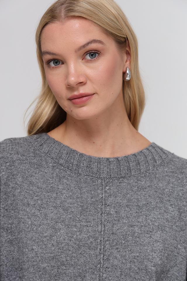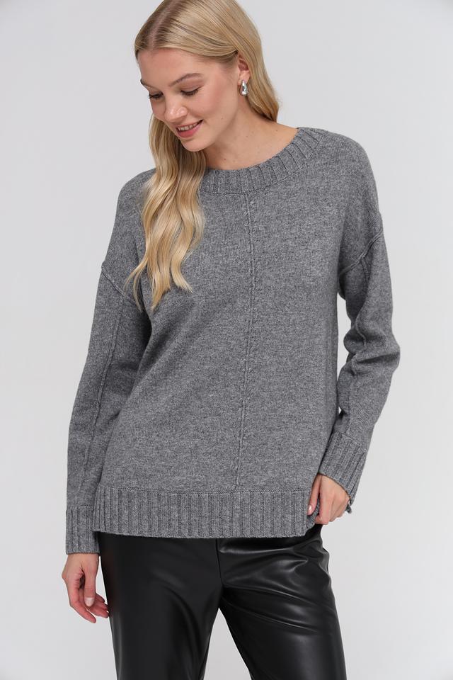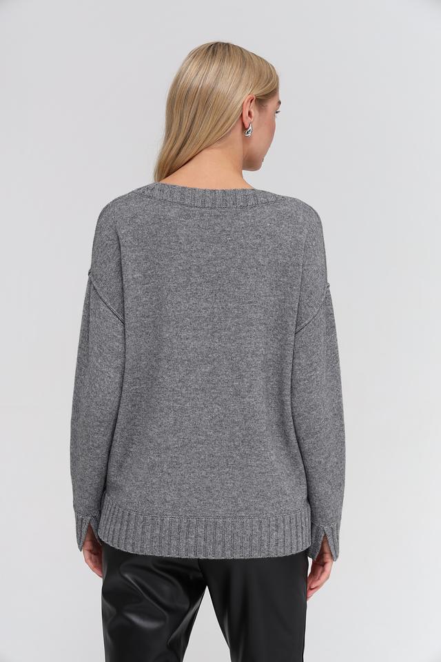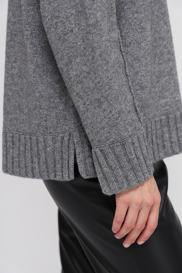 Цвет пуловера – серый меланж, который легко сочетается с различными элементами гардероба. Низ изделия и рукава оформлены широкой резинкой. Этот пуловер станет отличным дополнением к вашему повседневному образу, добавив ему уюта и стиля.