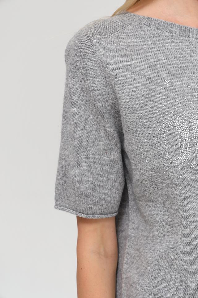Серый пуловер Oui из смесового трикотажа с короткими рукавами, украшенный стразами. Состав: полиамид, шерсть, полиакрил. Состав: полиамид 50%, шерсть 35%, полиакрил 15%