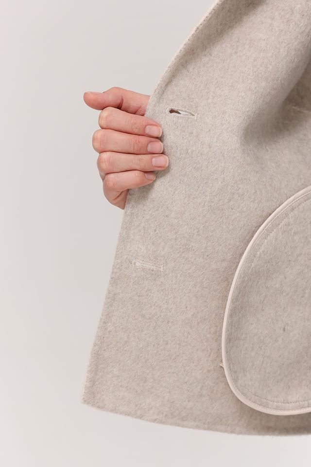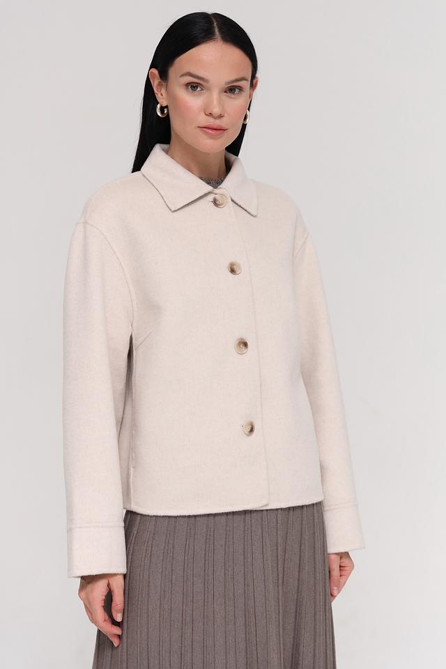 Жакет застегивается на четыре пуговицы в тон ткани, а воротник добавляет образу изысканности. Изготовлен из высококачественной ткани, в состав которой входит 50% шерсть, 38% полиэстер, 5% кашемир, 4% полиамид, 2% полиакрил и 1% вискоза.