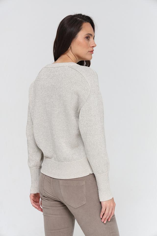 Состав ткани: 65% хлопок, 23% полиэстер, 12% метализированная нить. Этот пуловер идеально подойдет для создания повседневных образов, а также для более нарядных случаев. Он прекрасно сочетается с джинсами, брюками или юбками.
