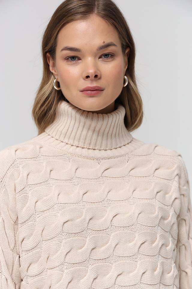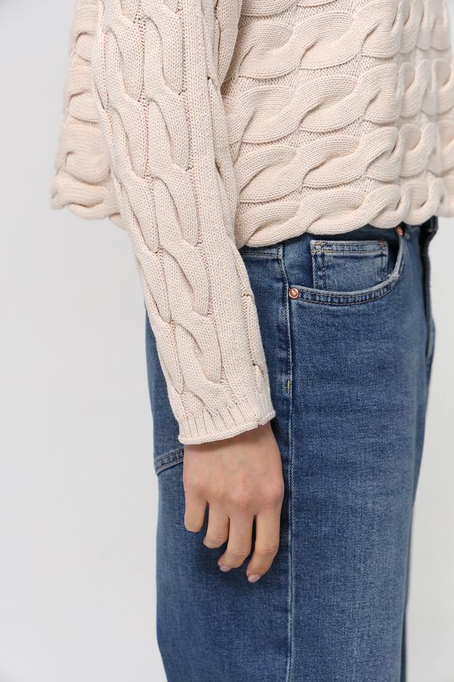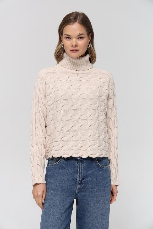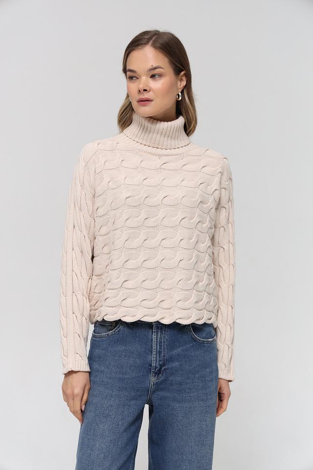 Бежевый пуловер от Oui с высоким горлом и выразительным узором из кос. Изготовлен из мягкого хлопка с добавлением полиакрила для сохранения формы. Идеальный выбор для создания уютного и стильного образа. Состав: хлопок 60%, полиакрил 40%
