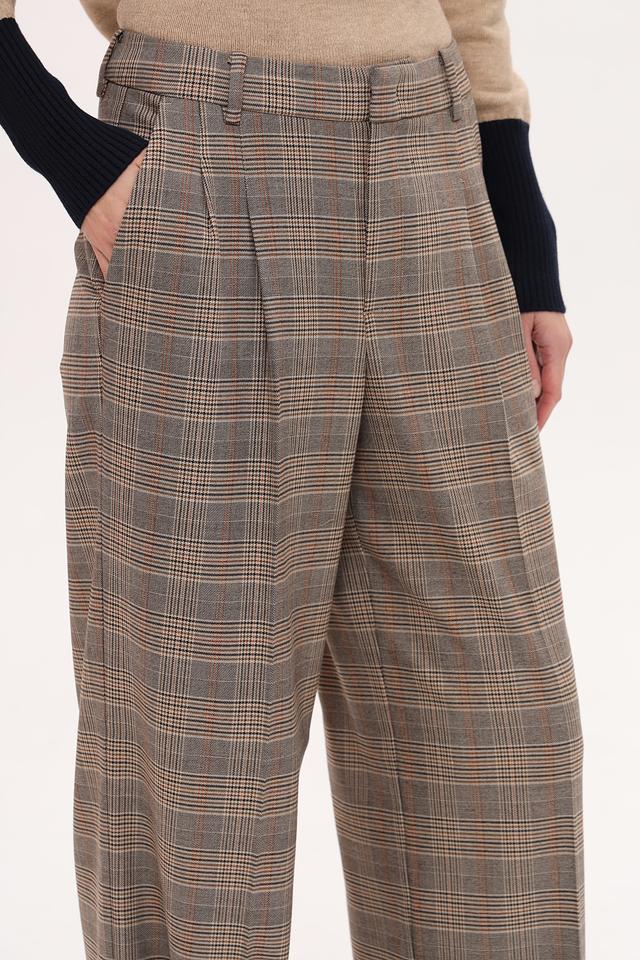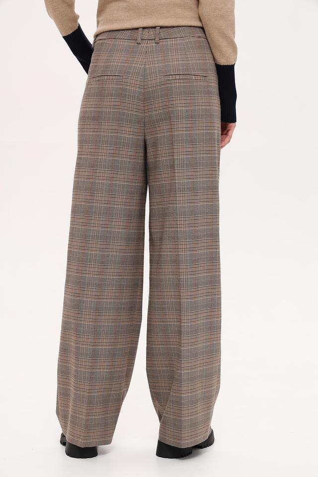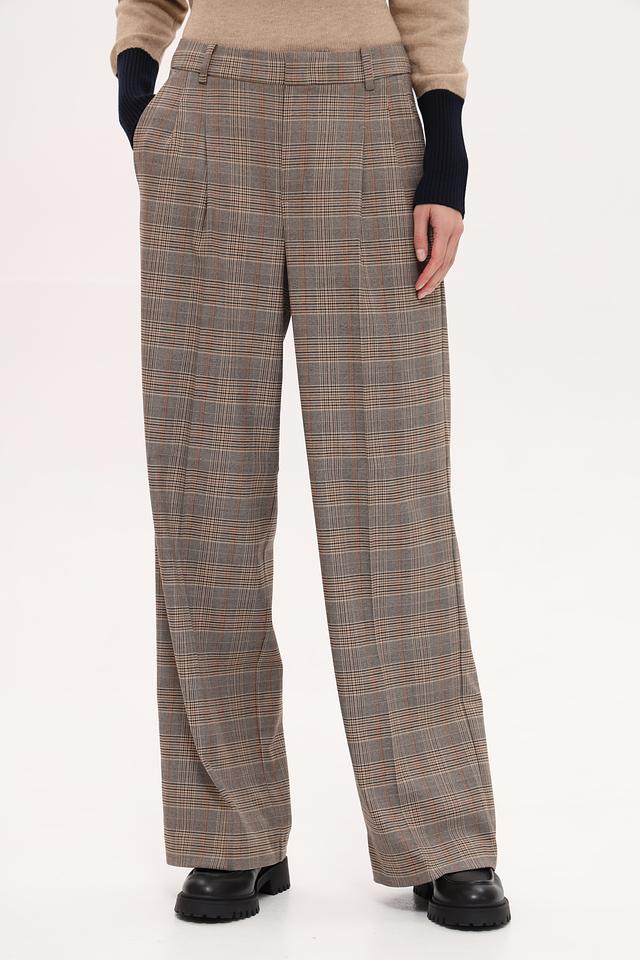 Эти стильные брюки от бренда Oui выполнены в клетчатом дизайне, сочетающем в себе оттенки коричневого, бежевого и серого. Прямой крой и высокая посадка создают элегантный силуэт, а складки добавляют изысканности.