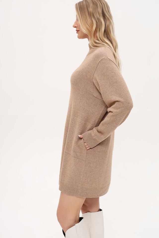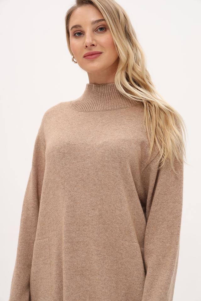 Бежевое платье от Oui выполнено из мягкого вязаного полотна с высоким горлом. Уютный силуэт и боковые карманы делают его идеальным выбором для повседневной носки. Состав включает шерсть, полиамид и модал. Состав: шерсть 50%, полиамид 30%, модал 20%