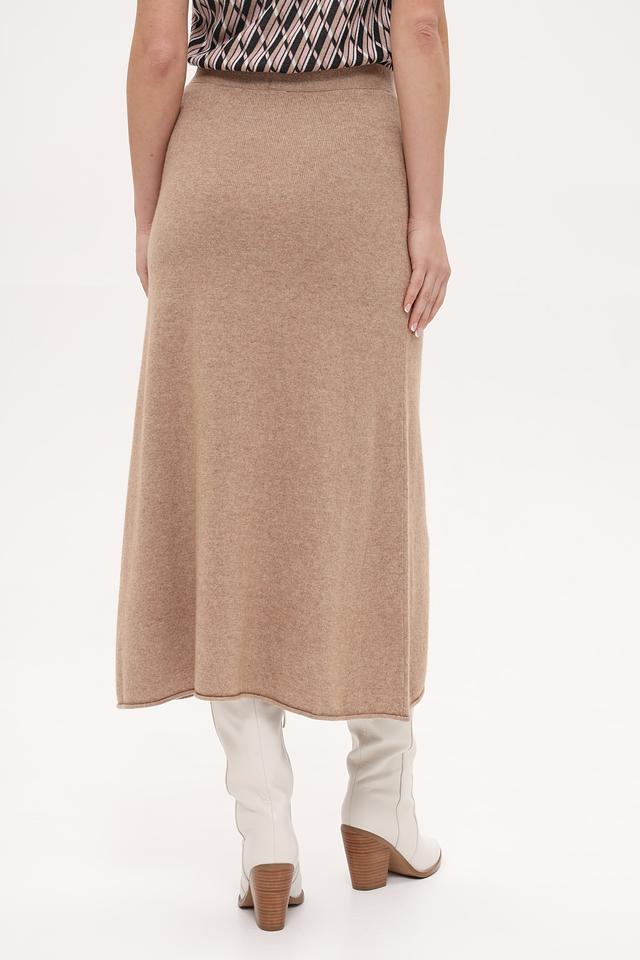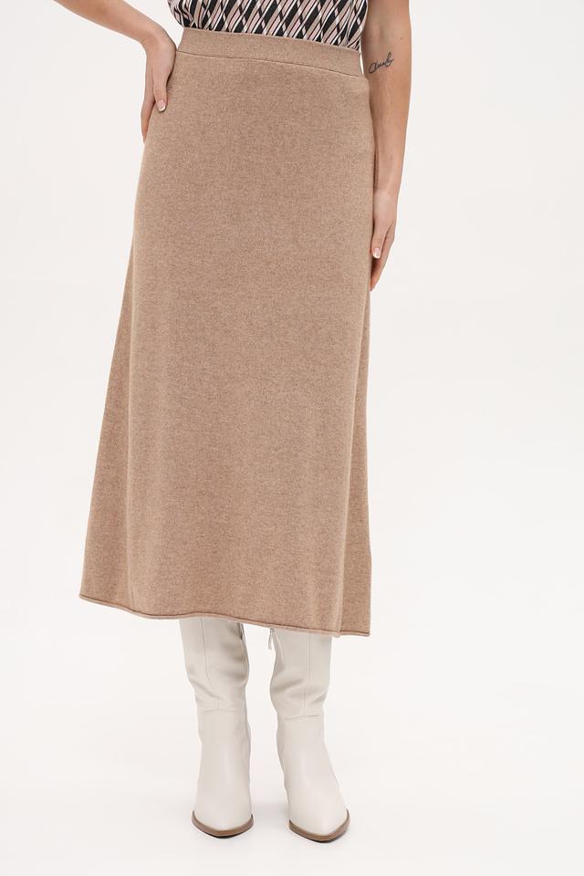 Юбка имеет прямую, слегка расклешенную форму и длину миди. Эластичный пояс обеспечивает удобную посадку по фигуре. Текстура вязаного полотна придает юбке особый шарм и делает ее универсальной для различных стилей.