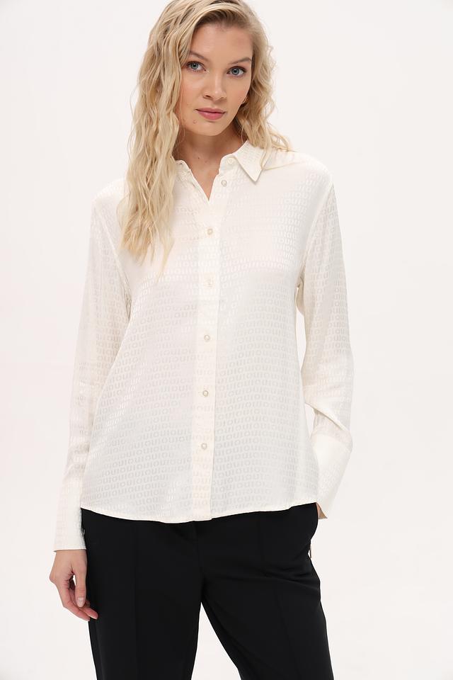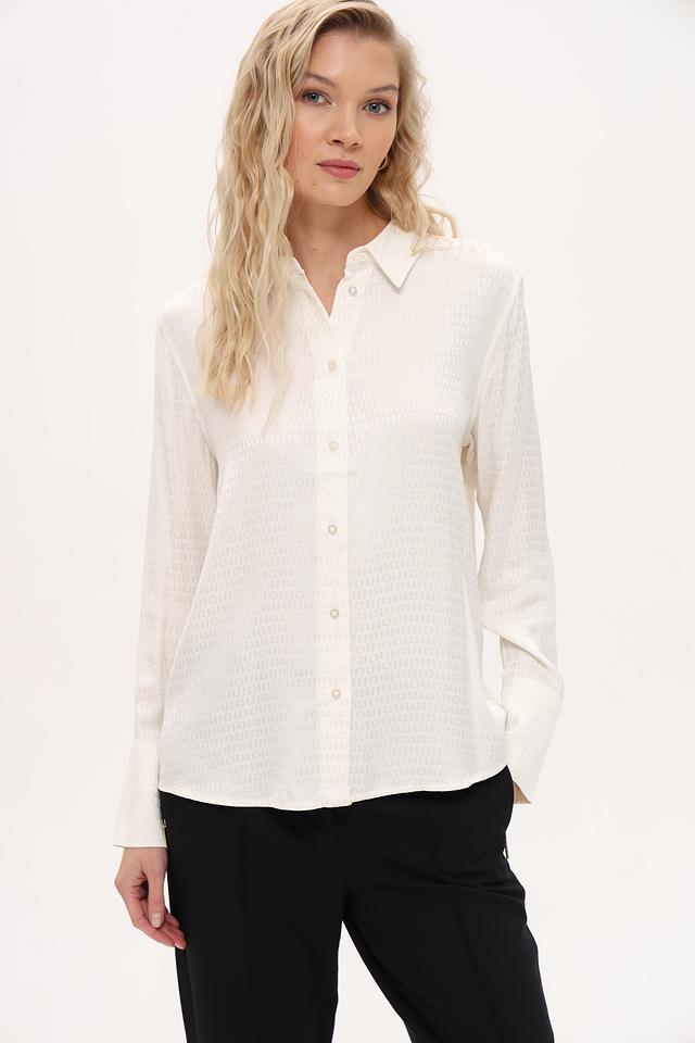 Белая рубашка Oui из 100% вискозы с лёгким принтом. Классический крой и длинный рукав делают эту модель универсальной для создания различных образов. Состав: вискоза 100%