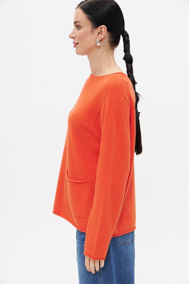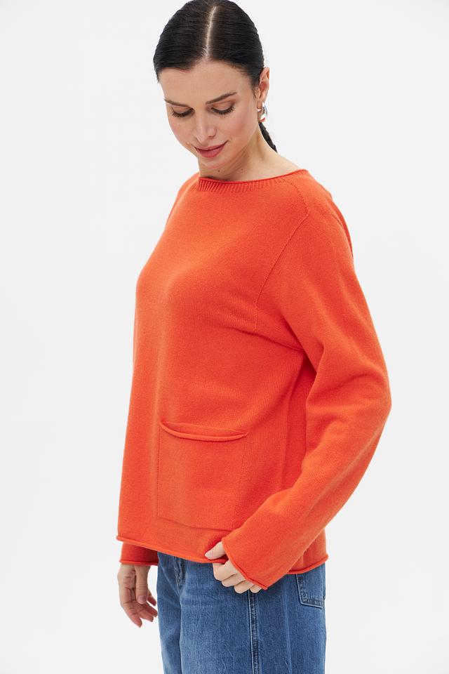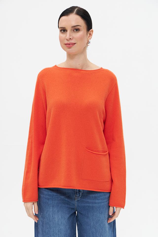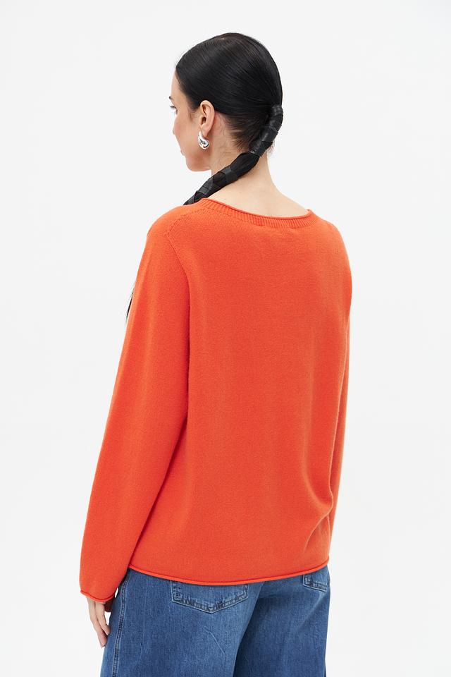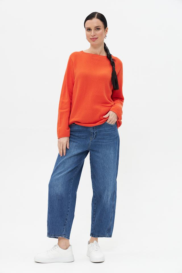 Яркий оранжевый цвет делает этот пуловер отличным выбором для создания стильных и запоминающихся образов. Он прекрасно сочетается с джинсами, брюками и юбками, позволяя создавать разнообразные комплекты на каждый день.