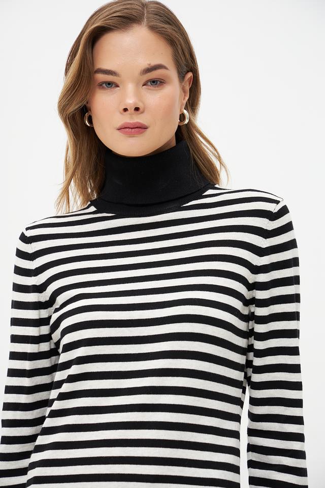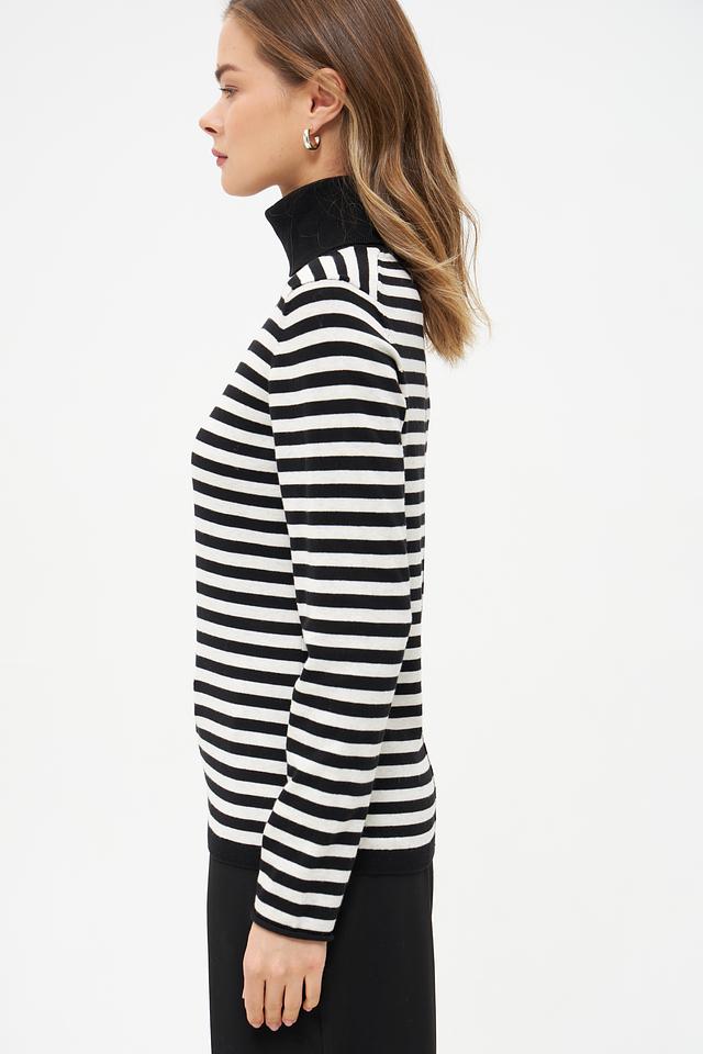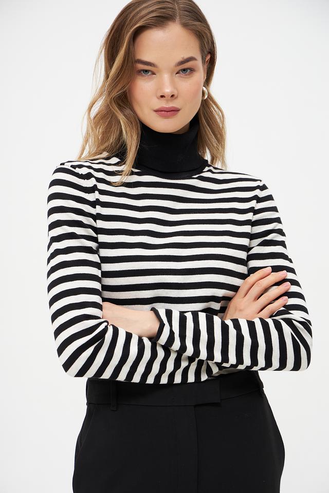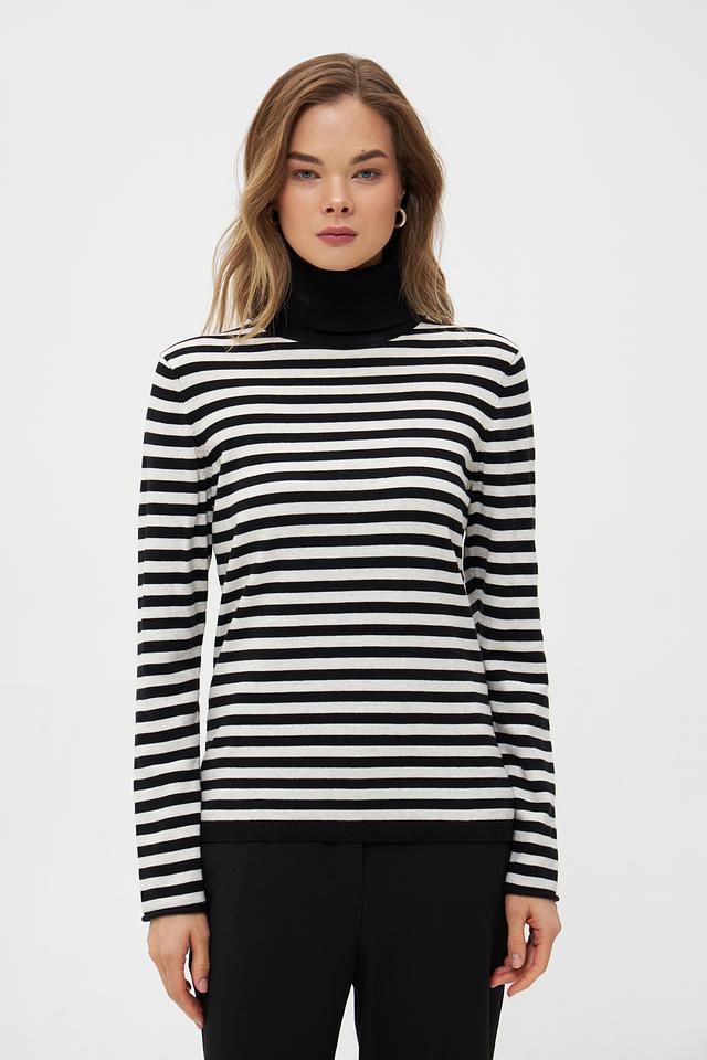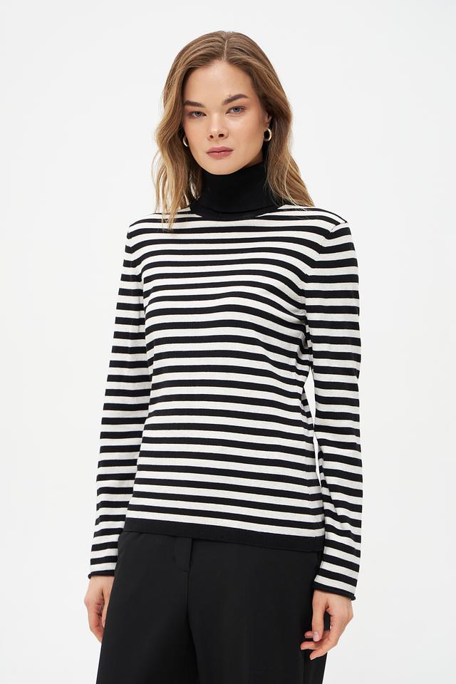 Водолазка Oui черного и белого цвета с классическим полосатым принтом. Изготовлена из мягкого хлопка с добавлением полиамида для сохранения формы. Состав: хлопок 85%, полиамид 15%