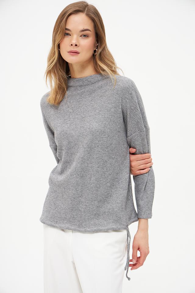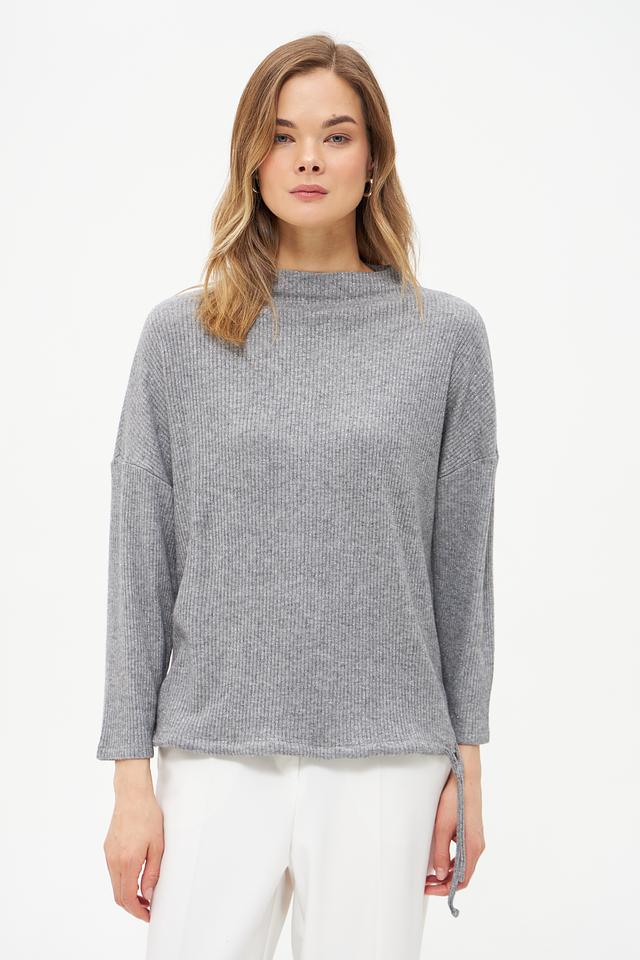 Пуловер Oui с завязками серый
