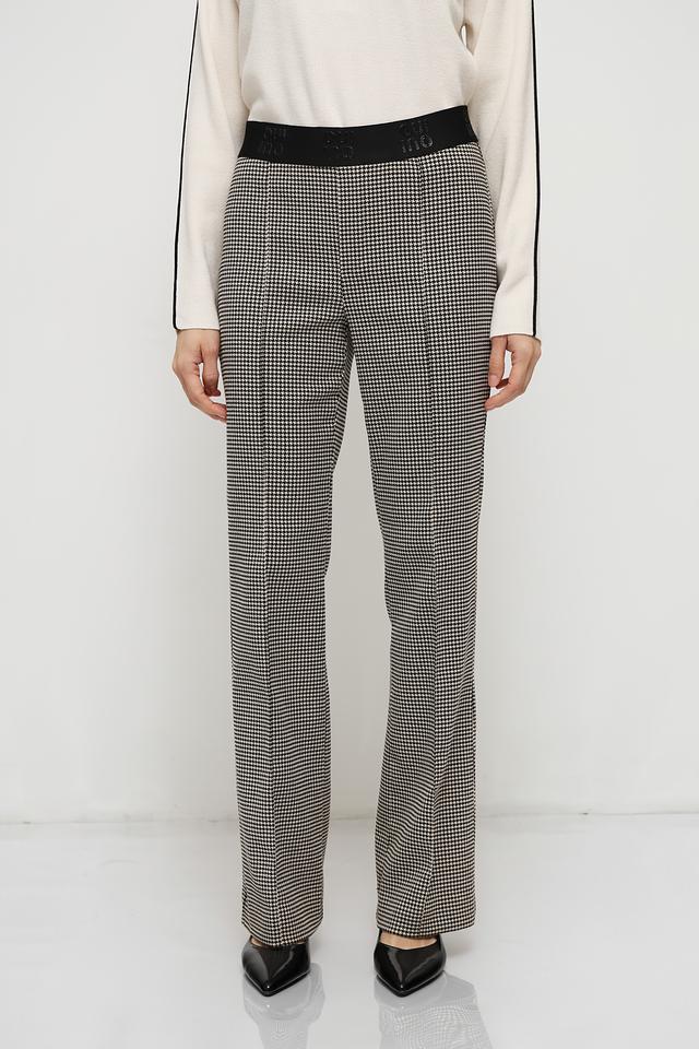 Женские брюки Oui классического кроя, выполнены в чёрно-белую клетку. Модель с эластичным поясом и широкими штанинами обеспечит комфорт и элегантный образ. Состав: полиэстер 44%, переработ.полиэстер 29%, вискоза 24%, эластан 3%