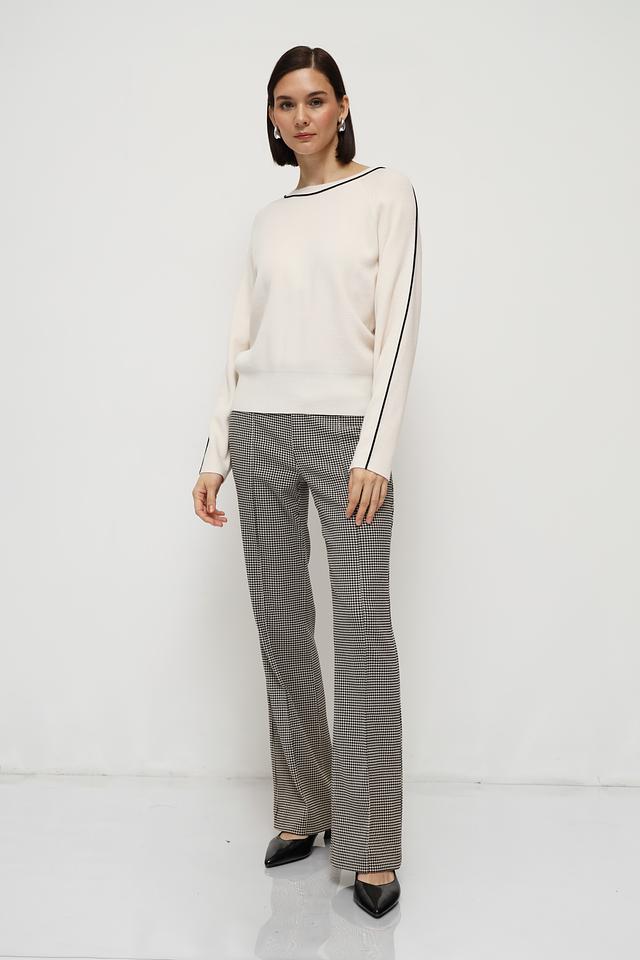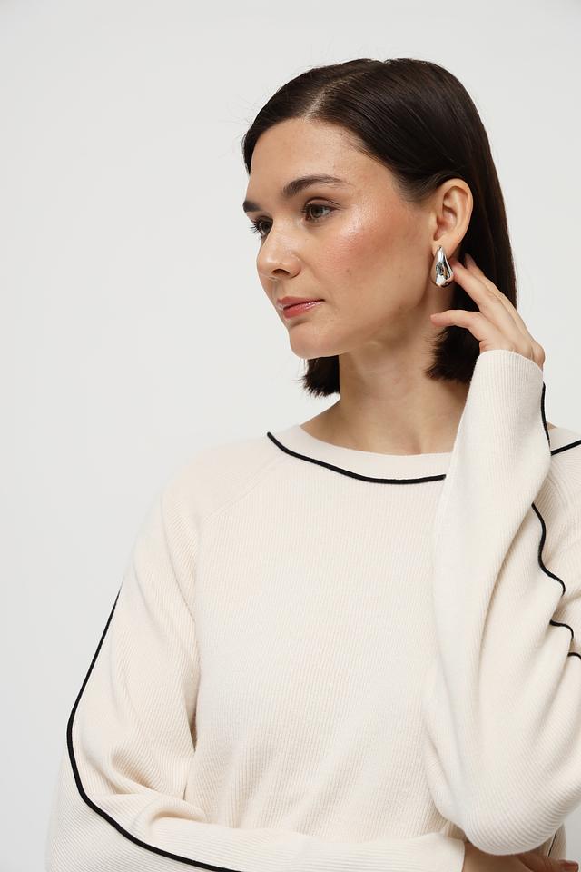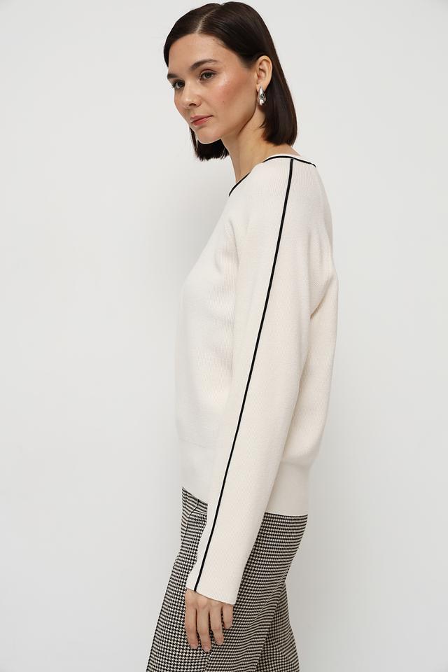 Бежевый пуловер от Oui с контрастной чёрной полоской на горловине и рукавах. Изготовлен из мягкого трикотажа, обеспечивающего комфорт и удобство в носке. Состав: вискоза 52%, полиэстер 30%, полиамид 18%