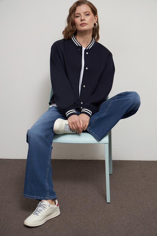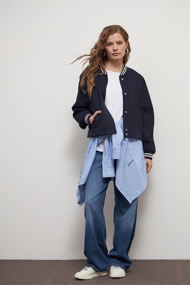 Жакет Oui – это стильный темно-синий бомбер с белыми полосами на манжетах и воротнике. Классический крой и качественные материалы делают этот жакет отличным выбором для создания повседневных образов. Состав: полиэстер 49%, вискоза 46%, эластан 5%