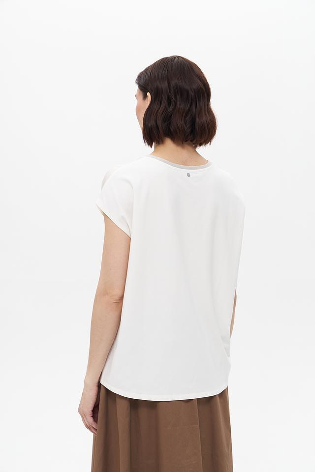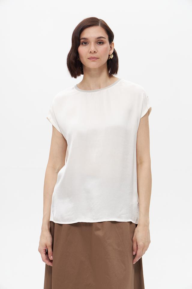 Благодаря своему лаконичному дизайну и нейтральному белому цвету, эта блуза станет незаменимой частью вашего гардероба. Она идеально подходит для повседневной носки, а также для особых случаев, когда требуется элегантный и утонченный образ.