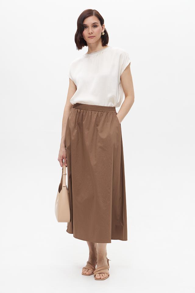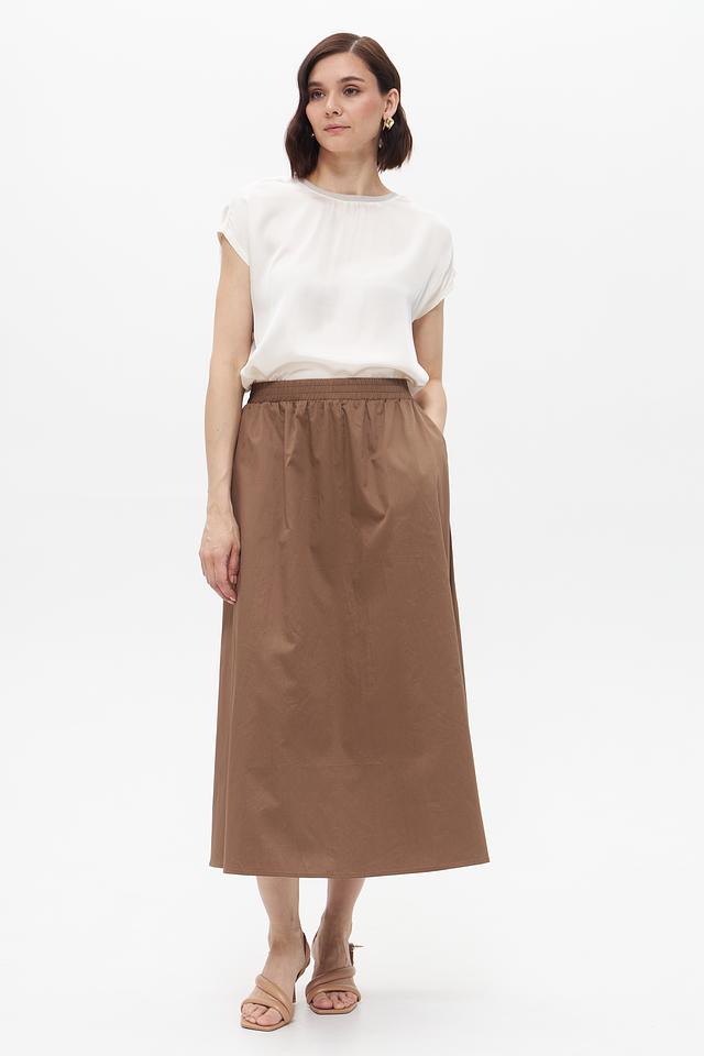 Округлый вырез горловины и короткие рукава делают эту блузу универсальной для различных стилей и сезонов. Она отлично сочетается с юбками, брюками и джинсами, позволяя создавать разнообразные комплекты.