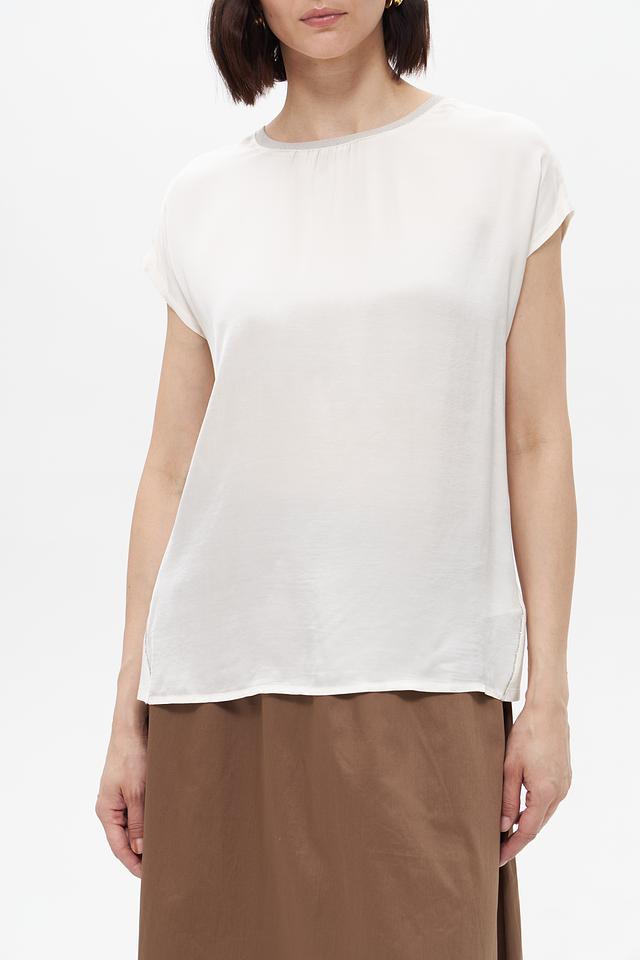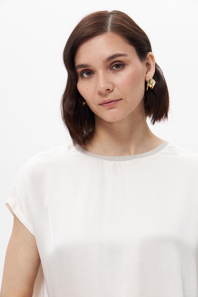 Белая блуза от Oui из 100% вискозы – это элегантный и комфортный выбор для создания стильного образа. Модель имеет короткие рукава и округлый вырез горловины, что делает ее универсальной для различных случаев. Состав: вискоза 100%