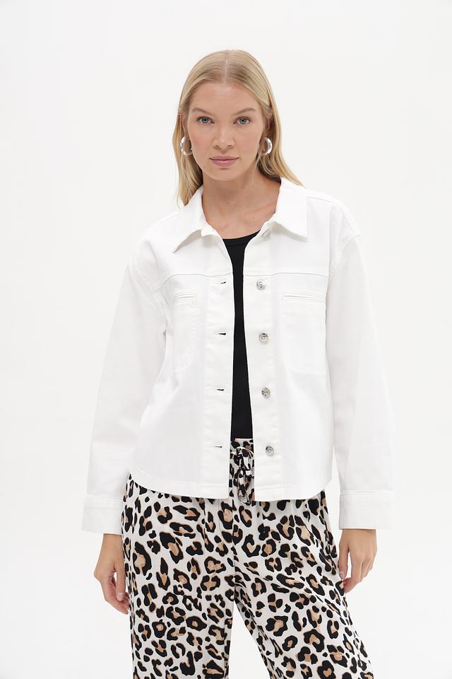 Этот жакет от Oui выполнен в классическом джинсовом стиле. Преобладающий цвет – белый, что делает его легко сочетаемым с различными элементами одежды.