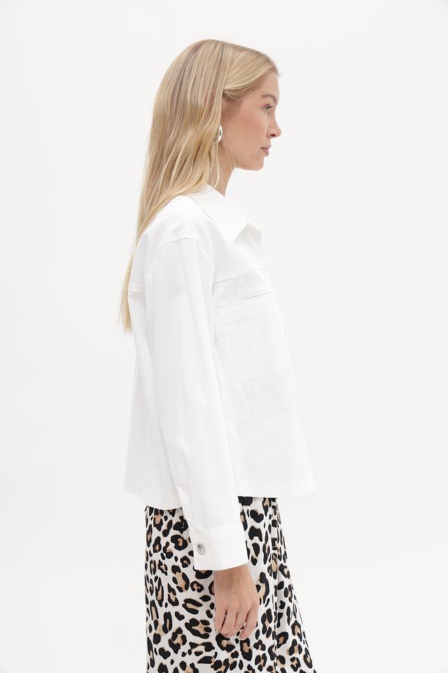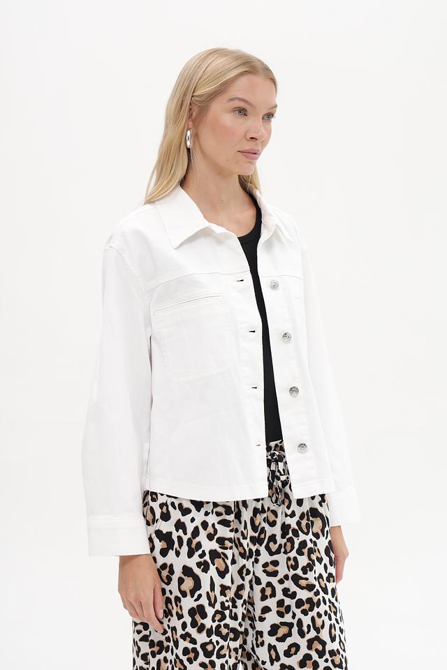 Белый джинсовый жакет от Oui – стильная и универсальная модель прямого кроя. Жакет застегивается на пуговицы и имеет классический отложной воротник, что делает его отличным дополнением к повседневному гардеробу. Состав: хлопок 99%, эластан 1%