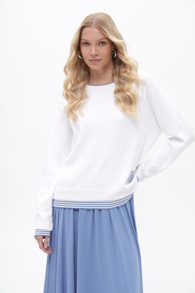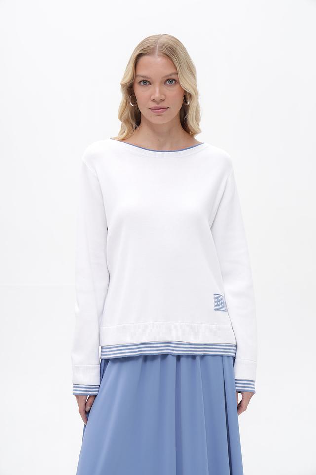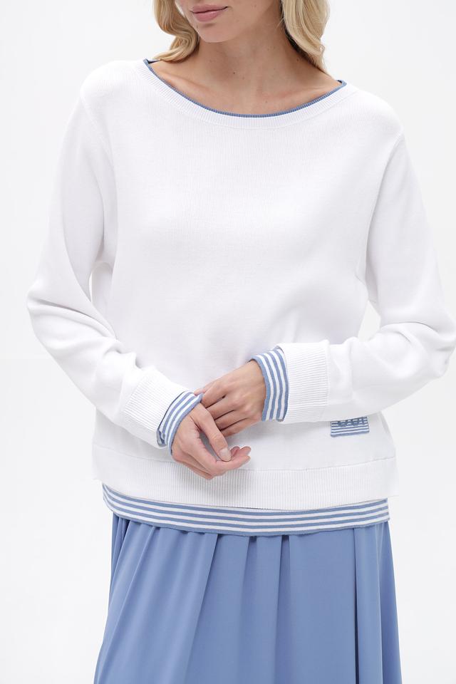 Белый пуловер от Oui из 100% хлопка с контрастной полоской на манжетах и подоле. Удобный крой и деликатный декор делают этот пуловер отличным выбором для повседневного гардероба. Состав: хлопок 100%